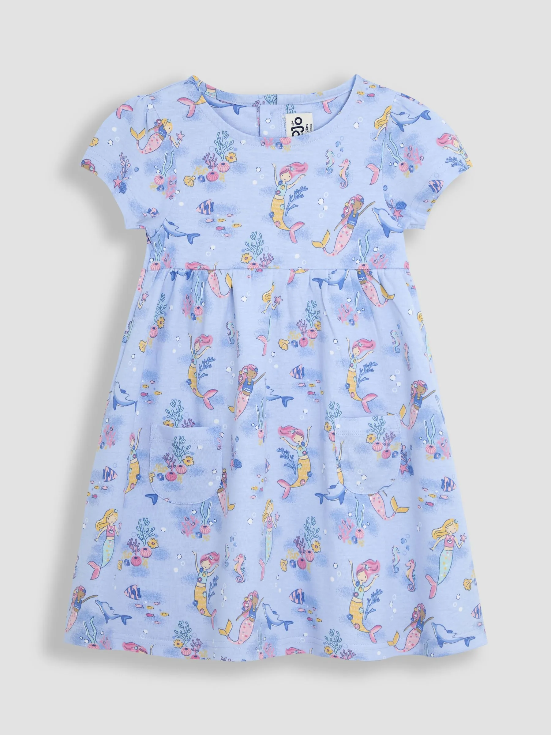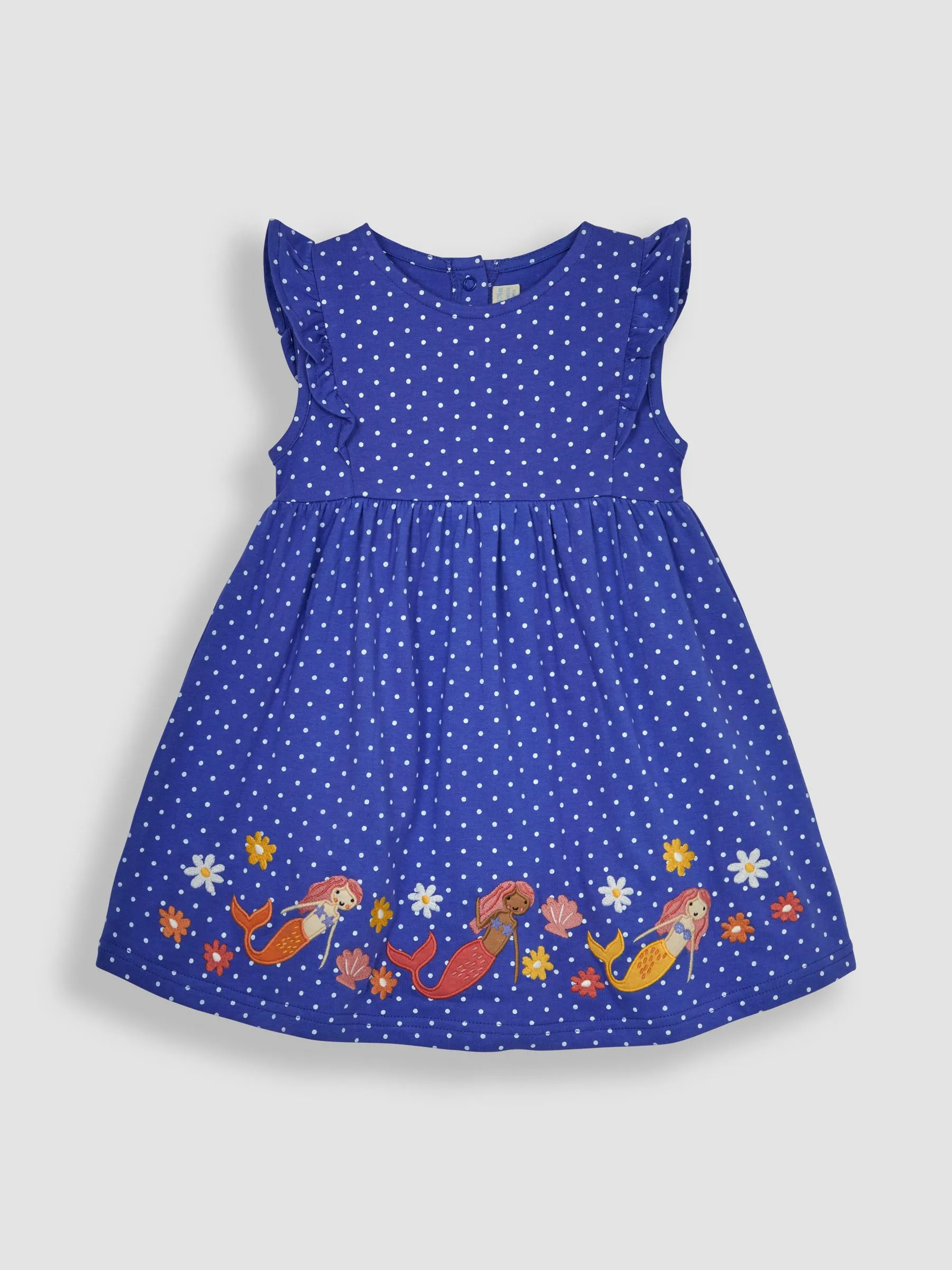 • Blue Mermaid Appliqué Frill Shoulder Pretty Summer Jersey Dress