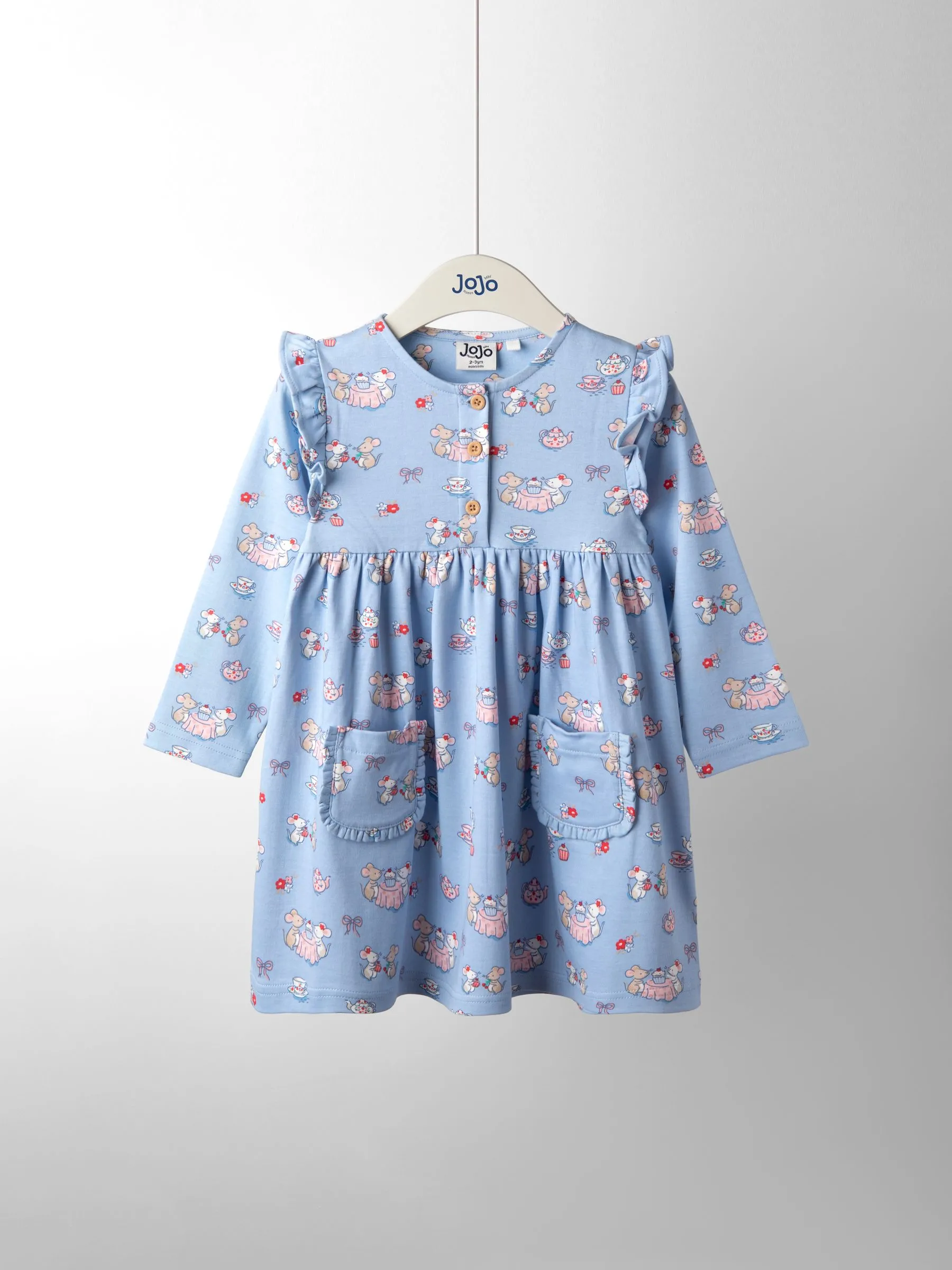 • Blue Mouse Tea Party Frill Shoulder Printed Pet In Pocket Dress