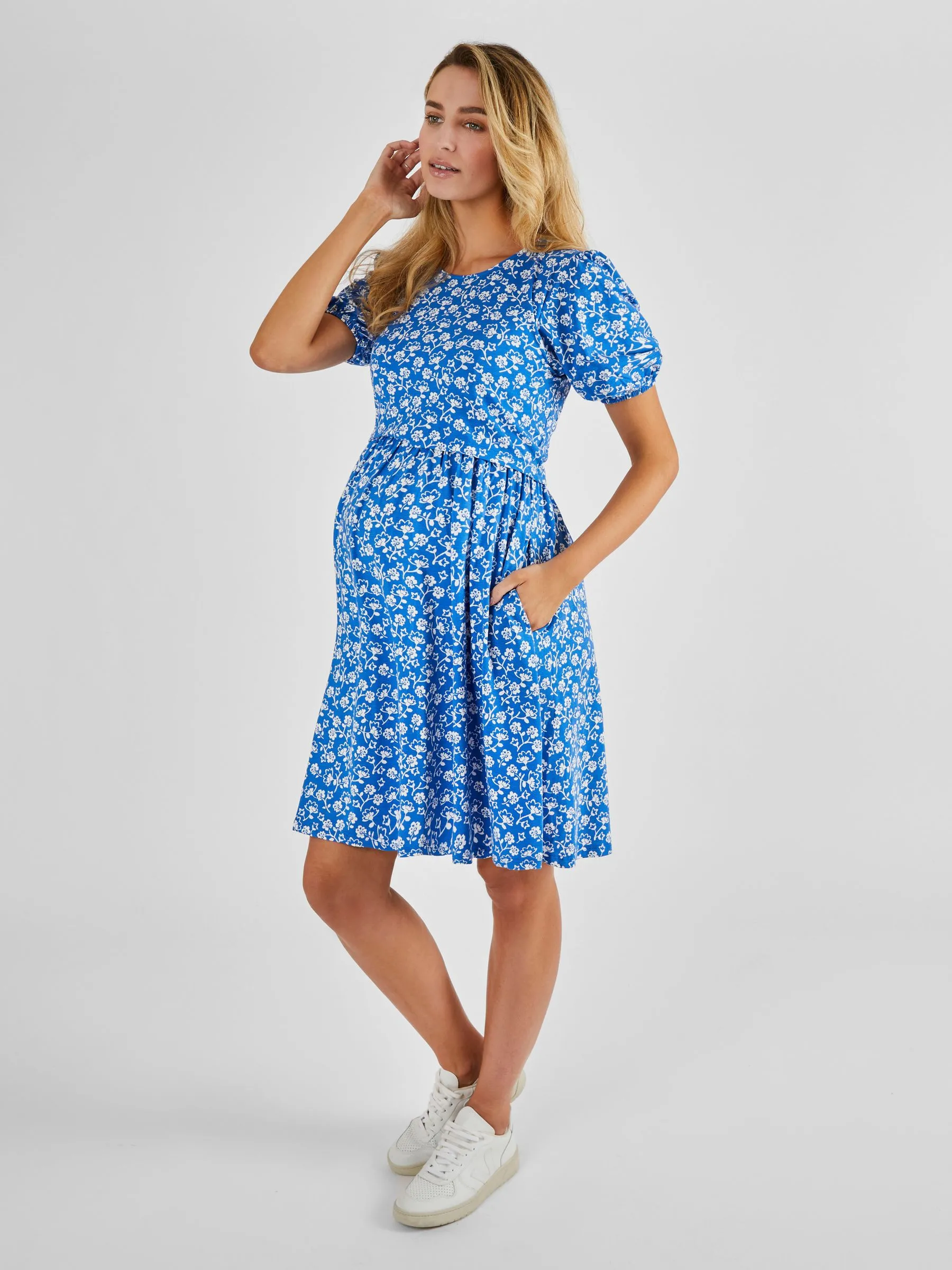 Blue Multi Print Maternity & Nursing Dress