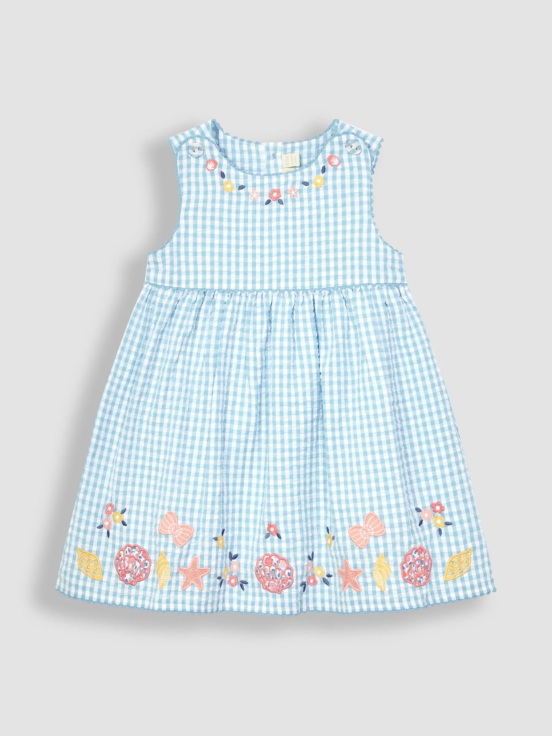 • Blue Nautical Appliqué Gingham Summer Dress