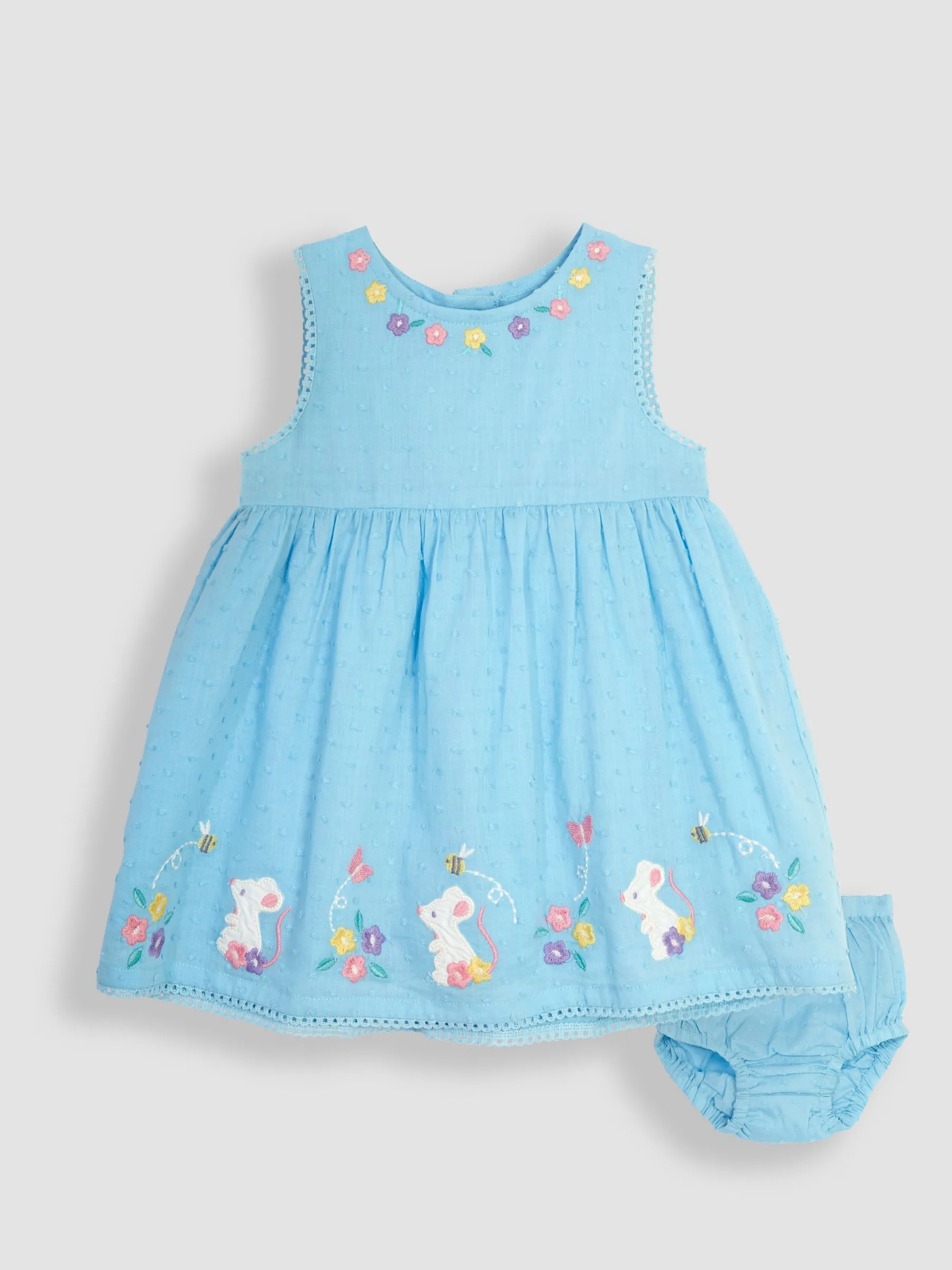 • Blue Mouse Floral Embroidered Baby Dress