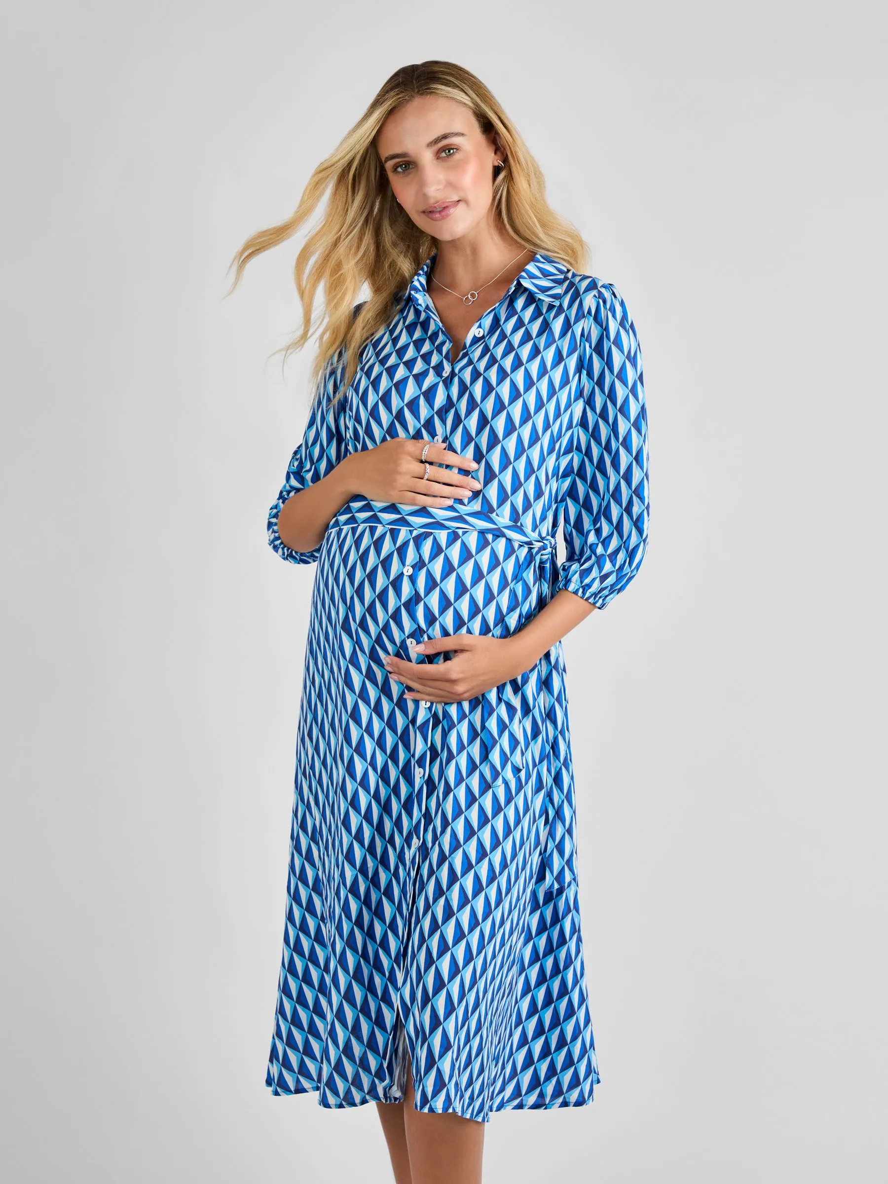 • Blue Button Through Maternity Midi Shirt Dress