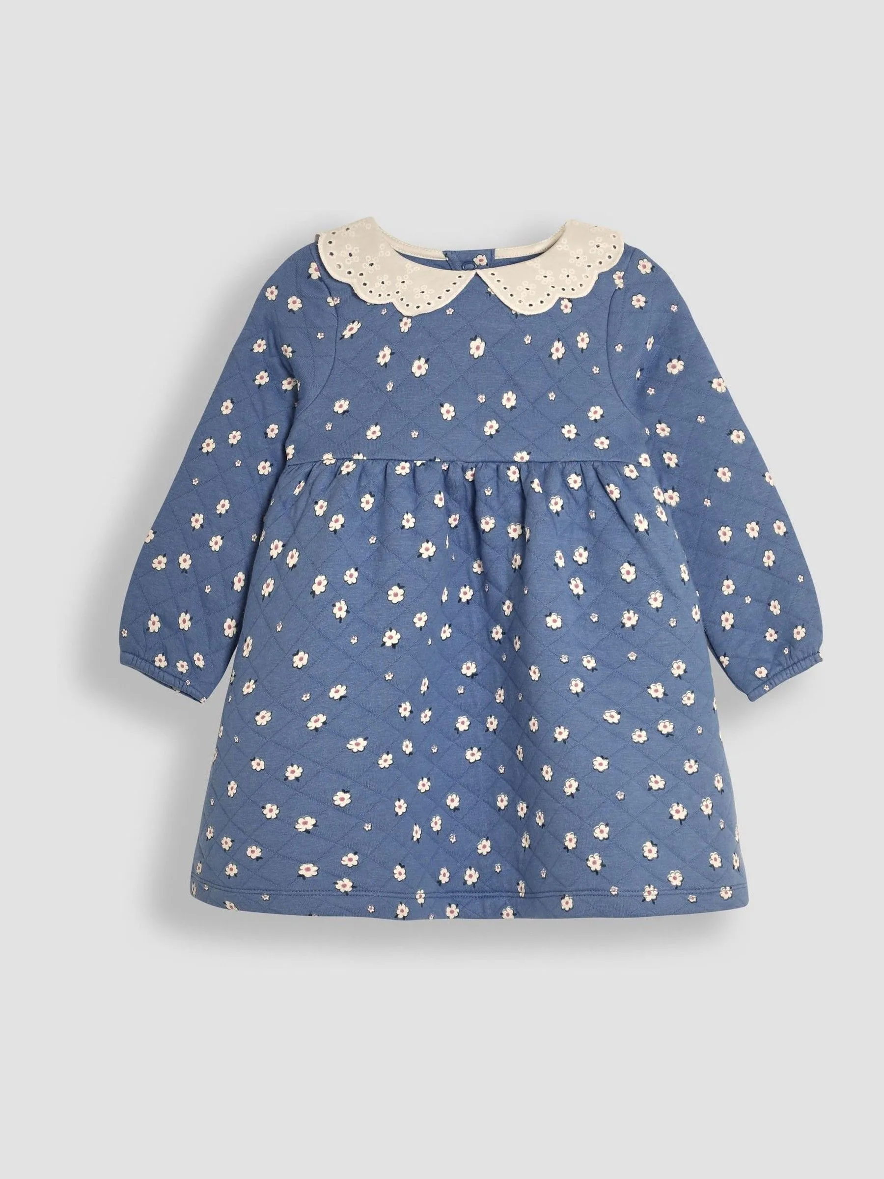Blue Daisy Floral Broderie Collar Quilted Dress