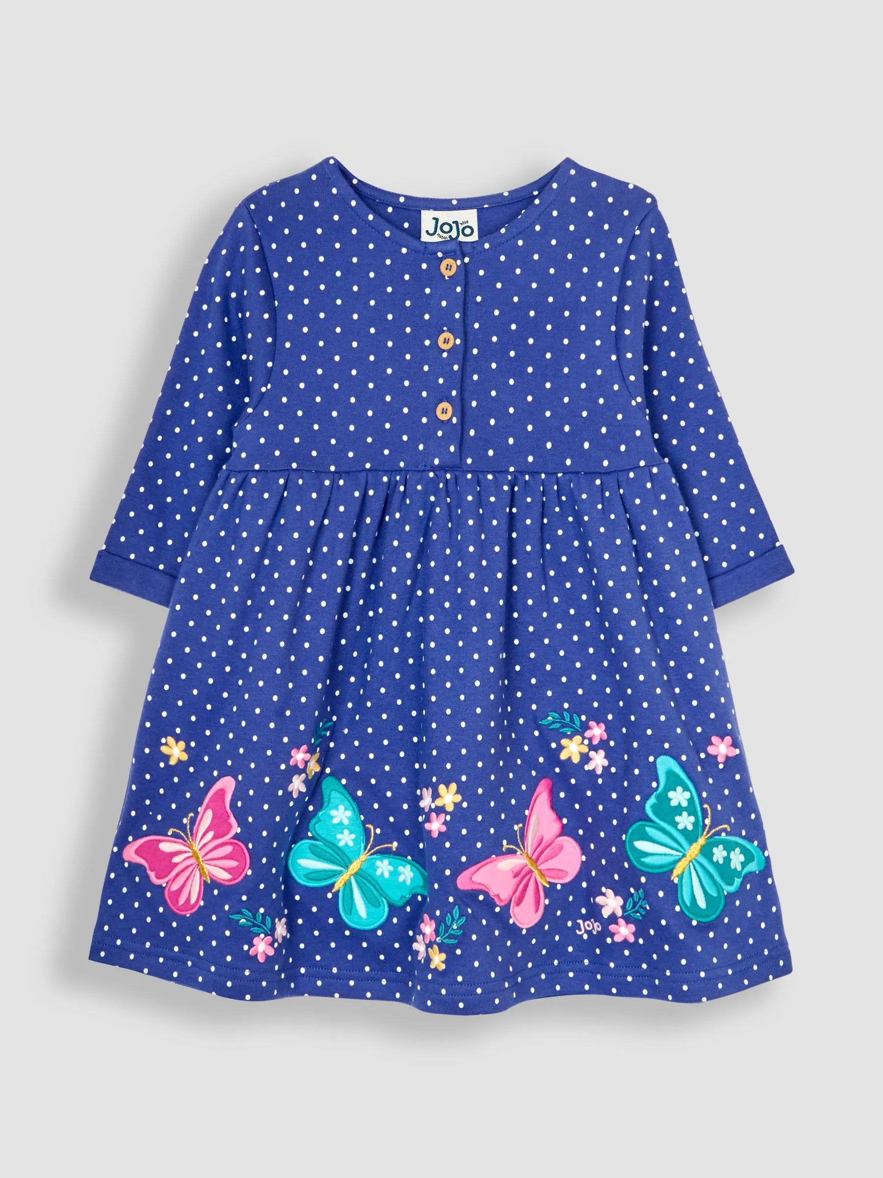 • Blue Butterfly Appliqué Button Front Dress