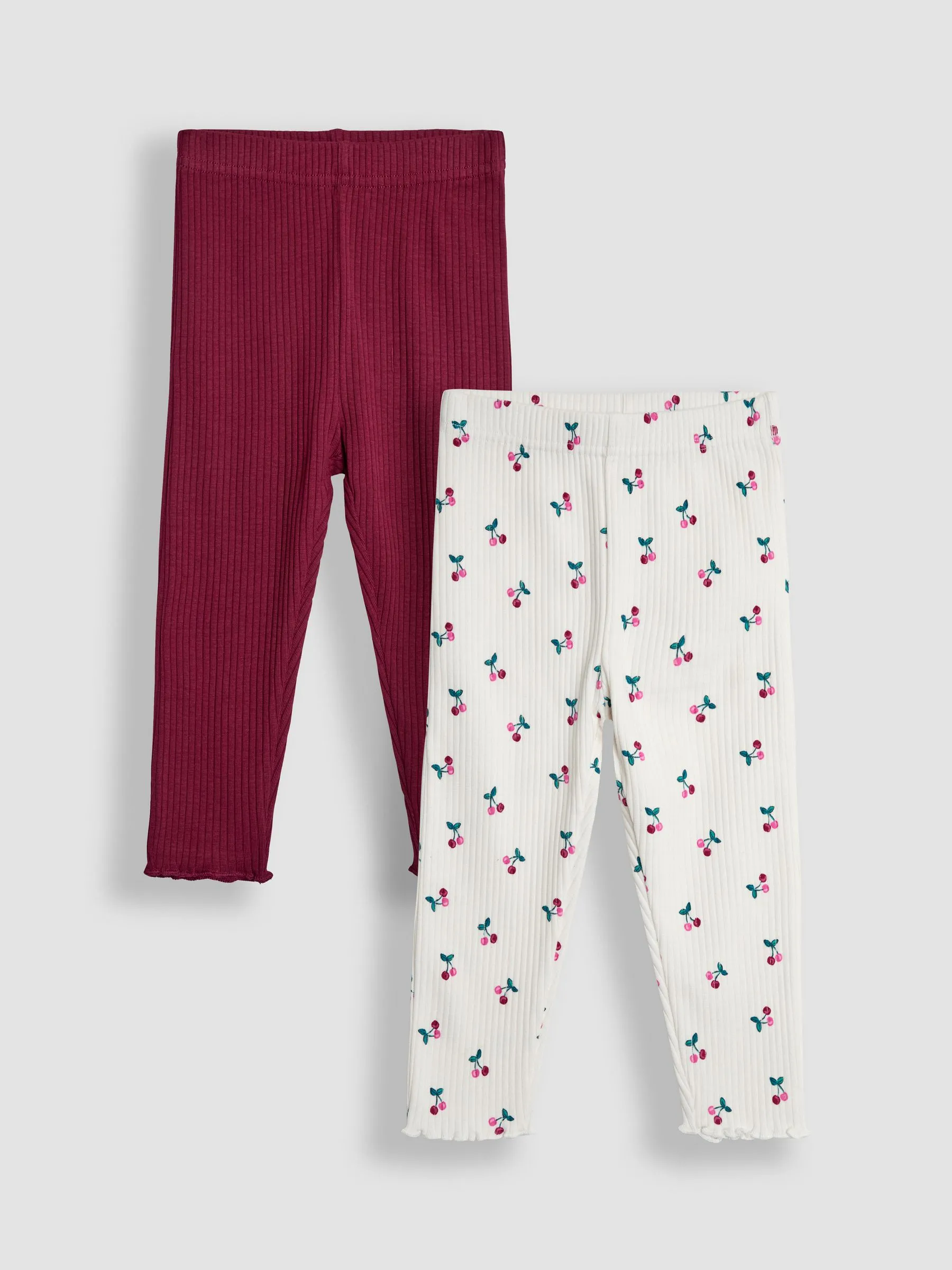 • Cream Cherry Rib Frill Leggings 2 Pack