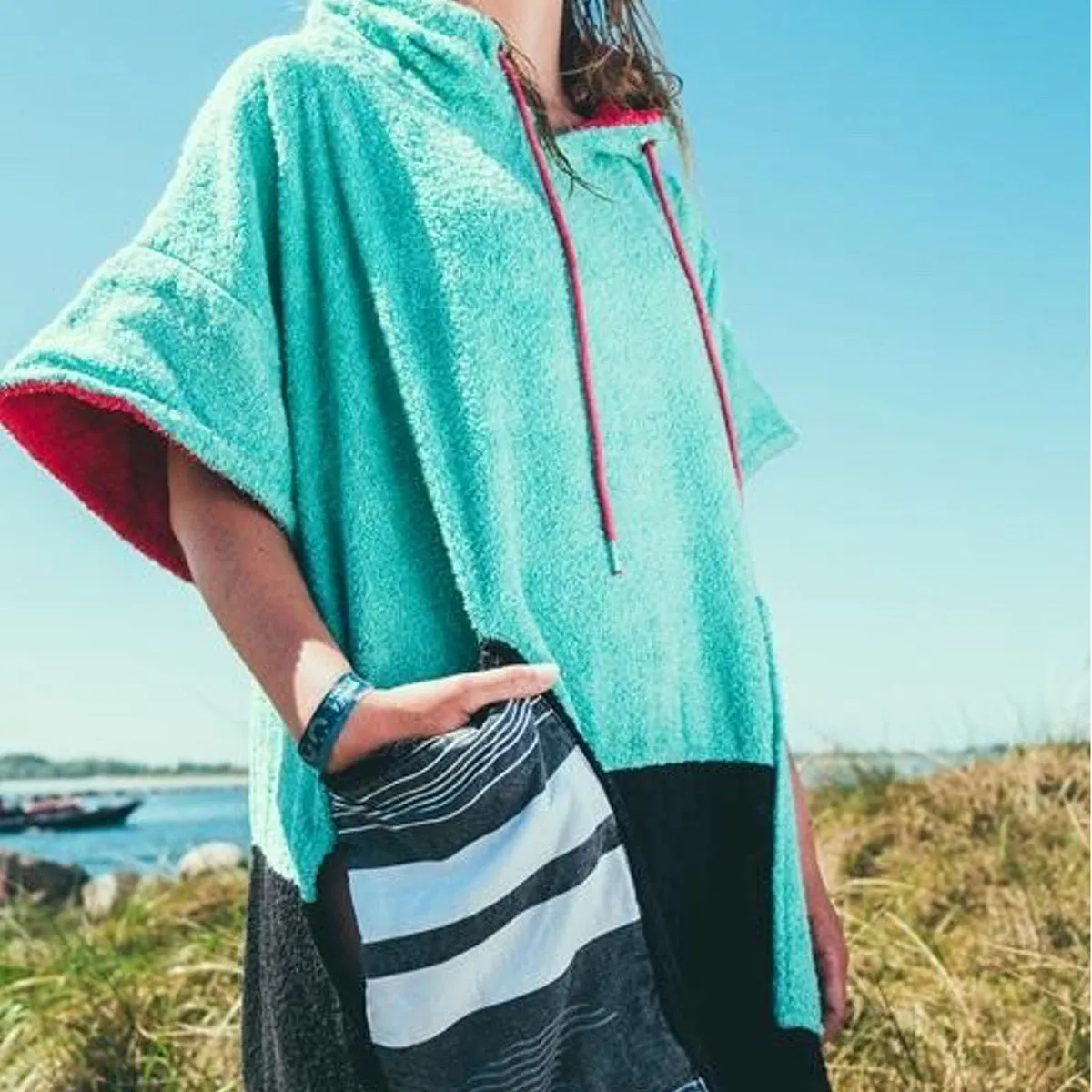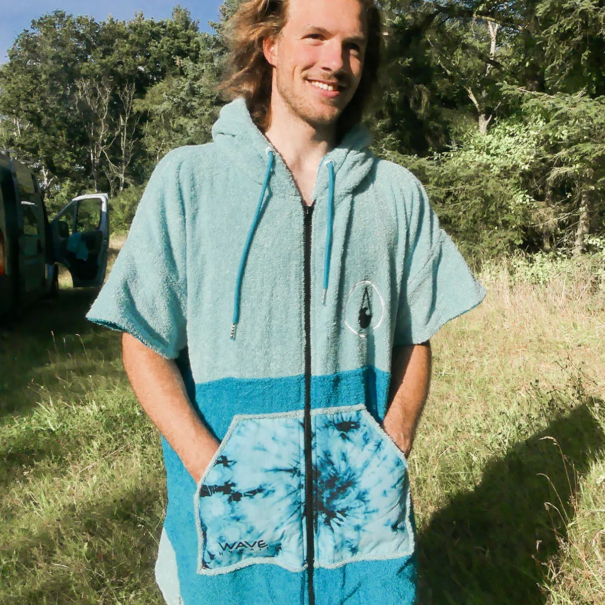 • Wave Hawaii Unisex Flyh Zipped Hooded Towel Poncho - Blue
