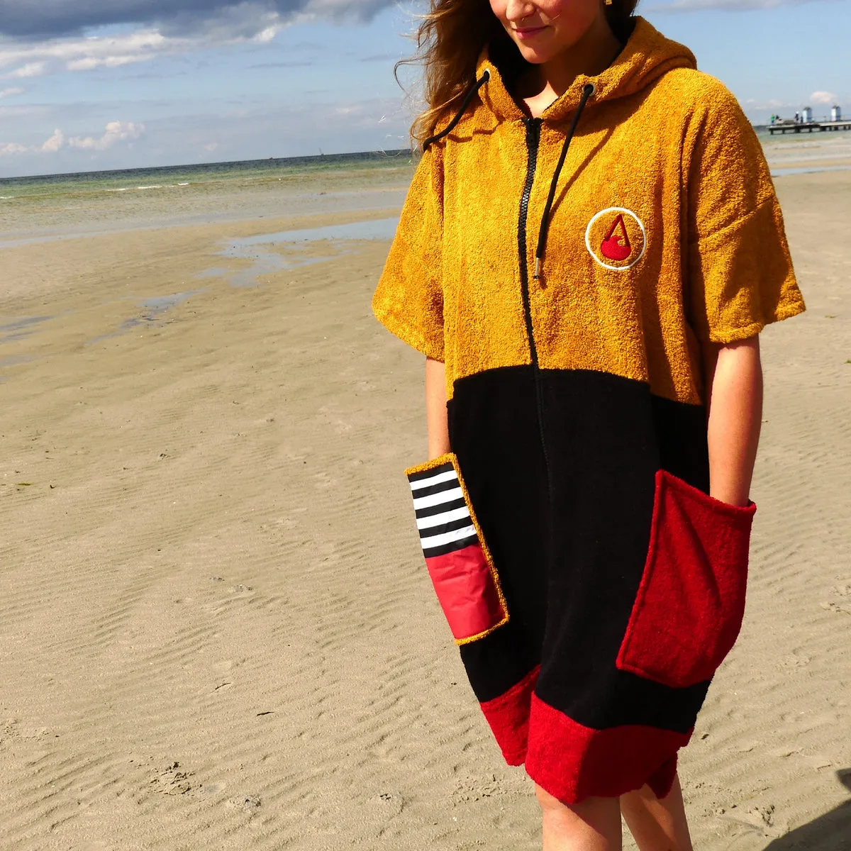 • Wave Hawaii Unisex Dusty Zip Up Surfing Towel Poncho - Mustard