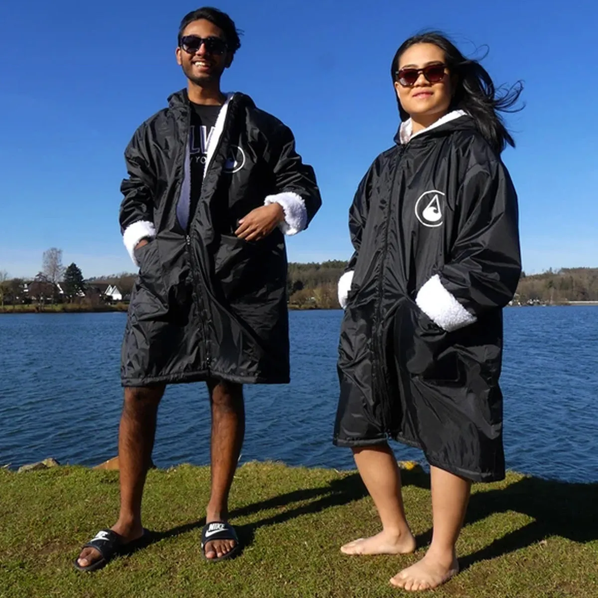 Wave Hawaii Unisex Adults Jety Sherpa Surf Zip Up Poncho – Black – L/XL