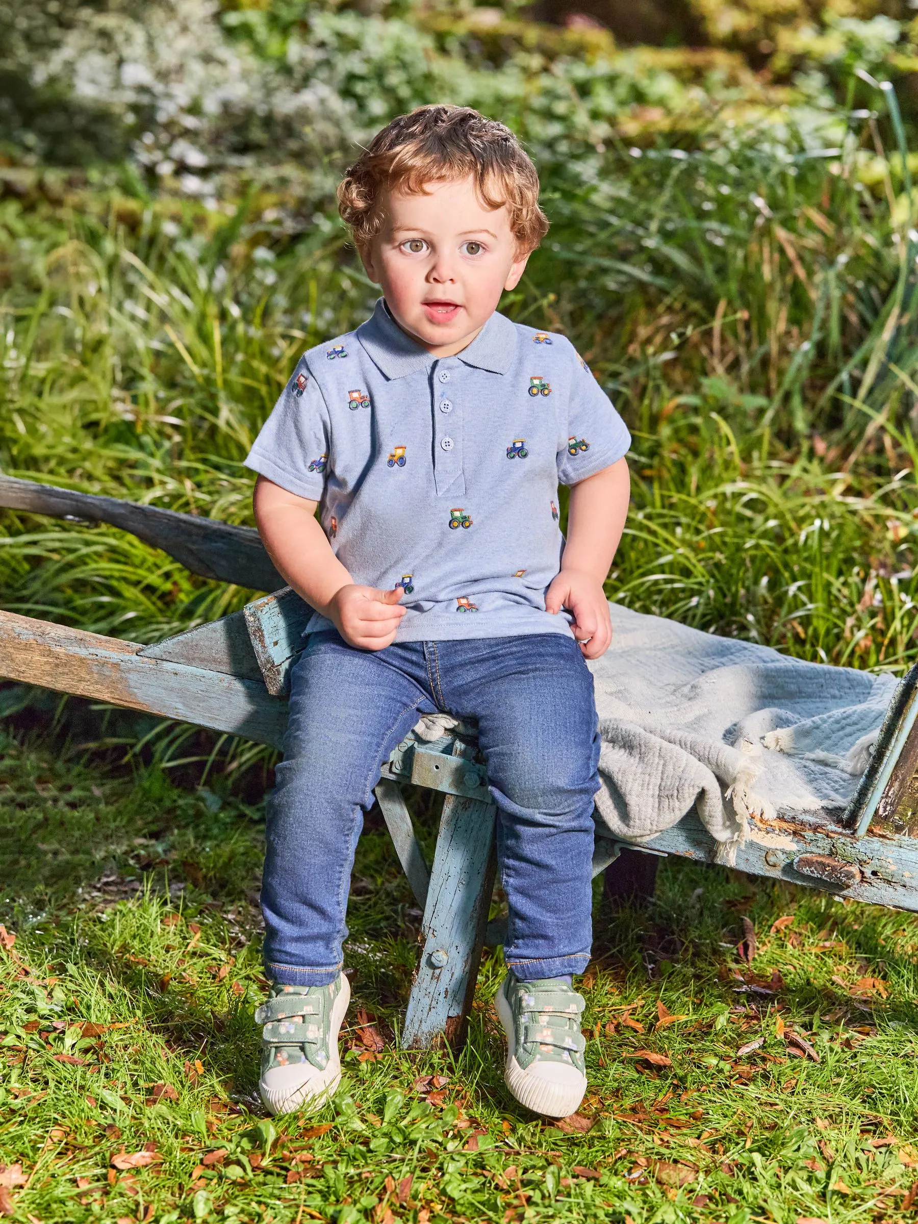 • Blue Tractor Printed Polo Shirt