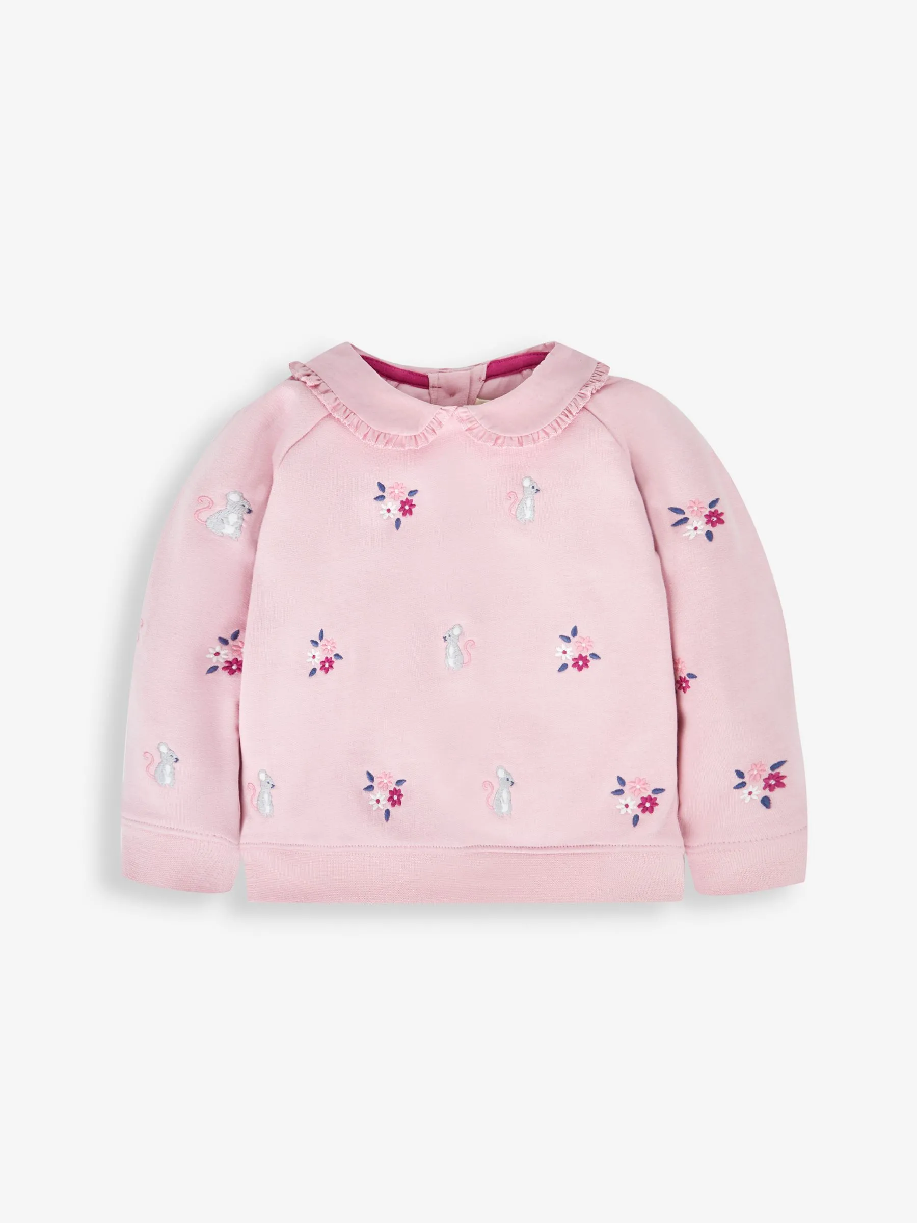 Sale!Pink Mouse Embroidered Jersey Sweatshirt With Collar