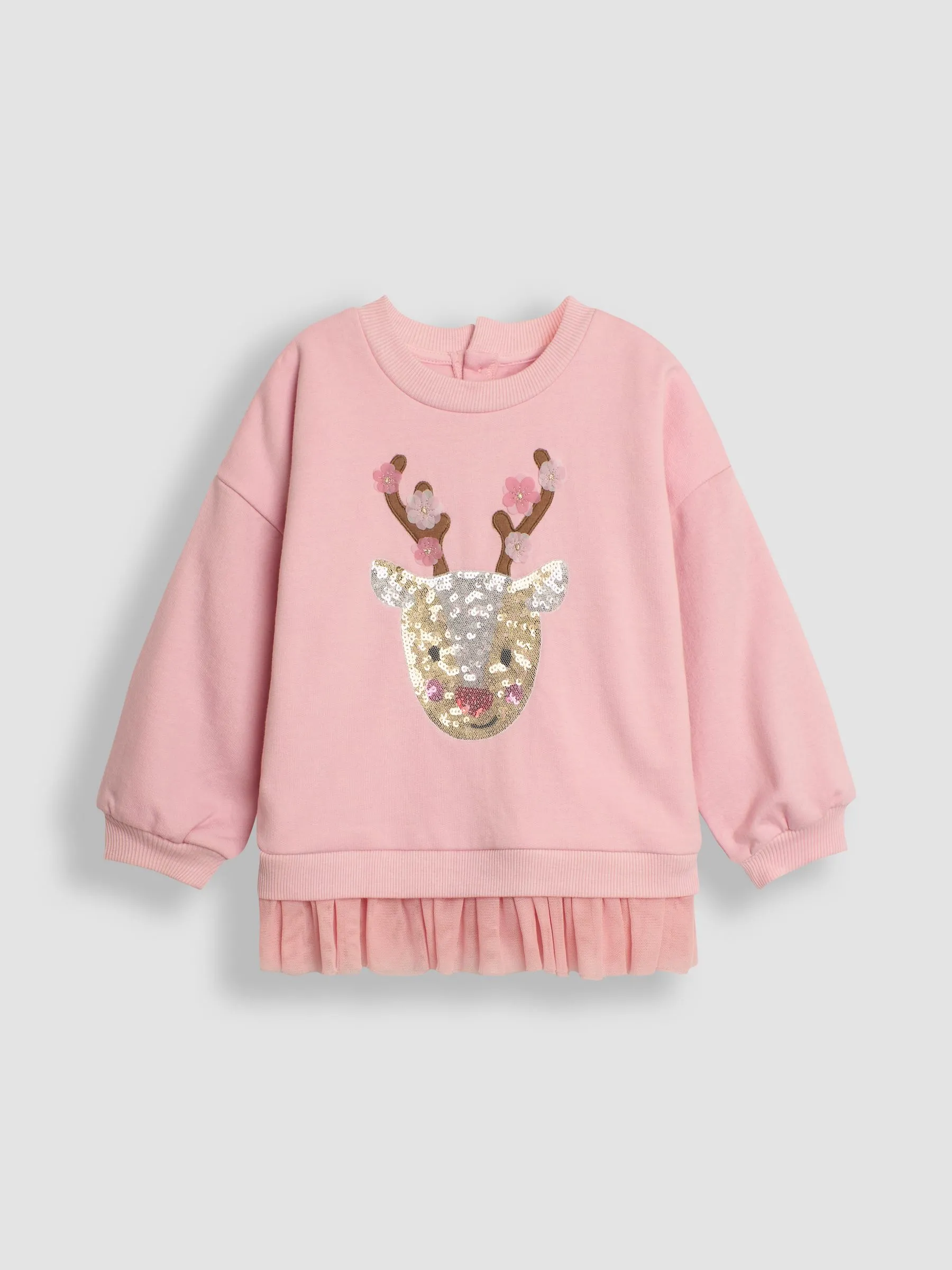 Sale!Pink Reindeer Sequin Tulle Frill Sweatshirt