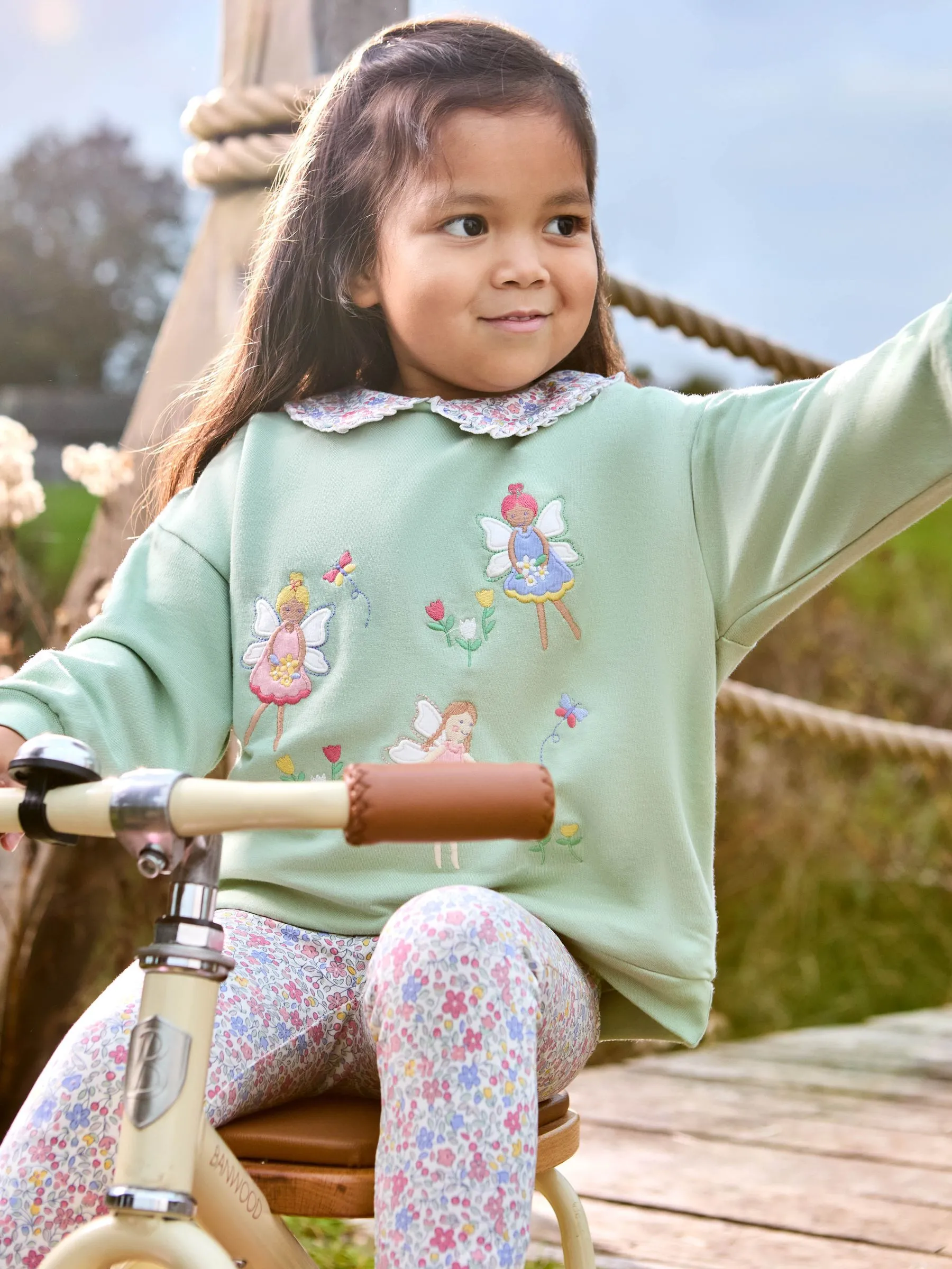 • Green Fairy Frill Collar Appliqué Sweatshirt