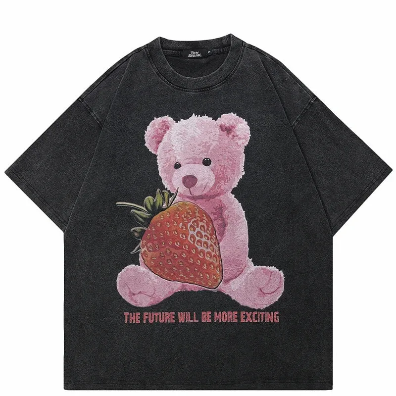 Sale!Coal Black Strawberry Stuffed Bear Visual T-Shirt