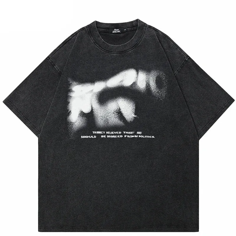Sale!Dark Sable Fuzzy Letters Graphic T-Shirt