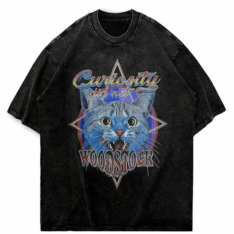 Sale!Curiosity Did Not Woodstock Star Cat T-Shirt