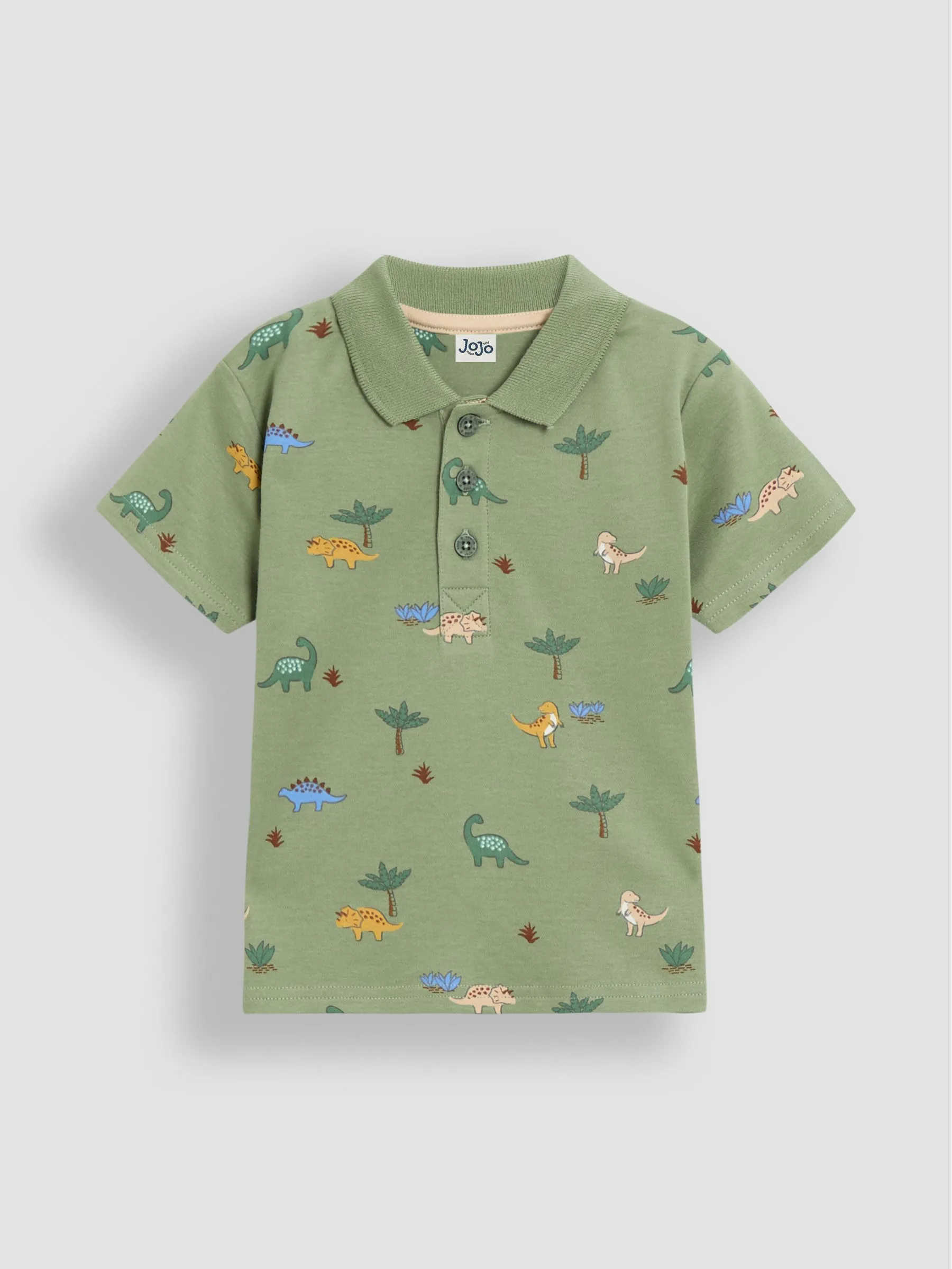 • Green Dino Printed Polo Shirt