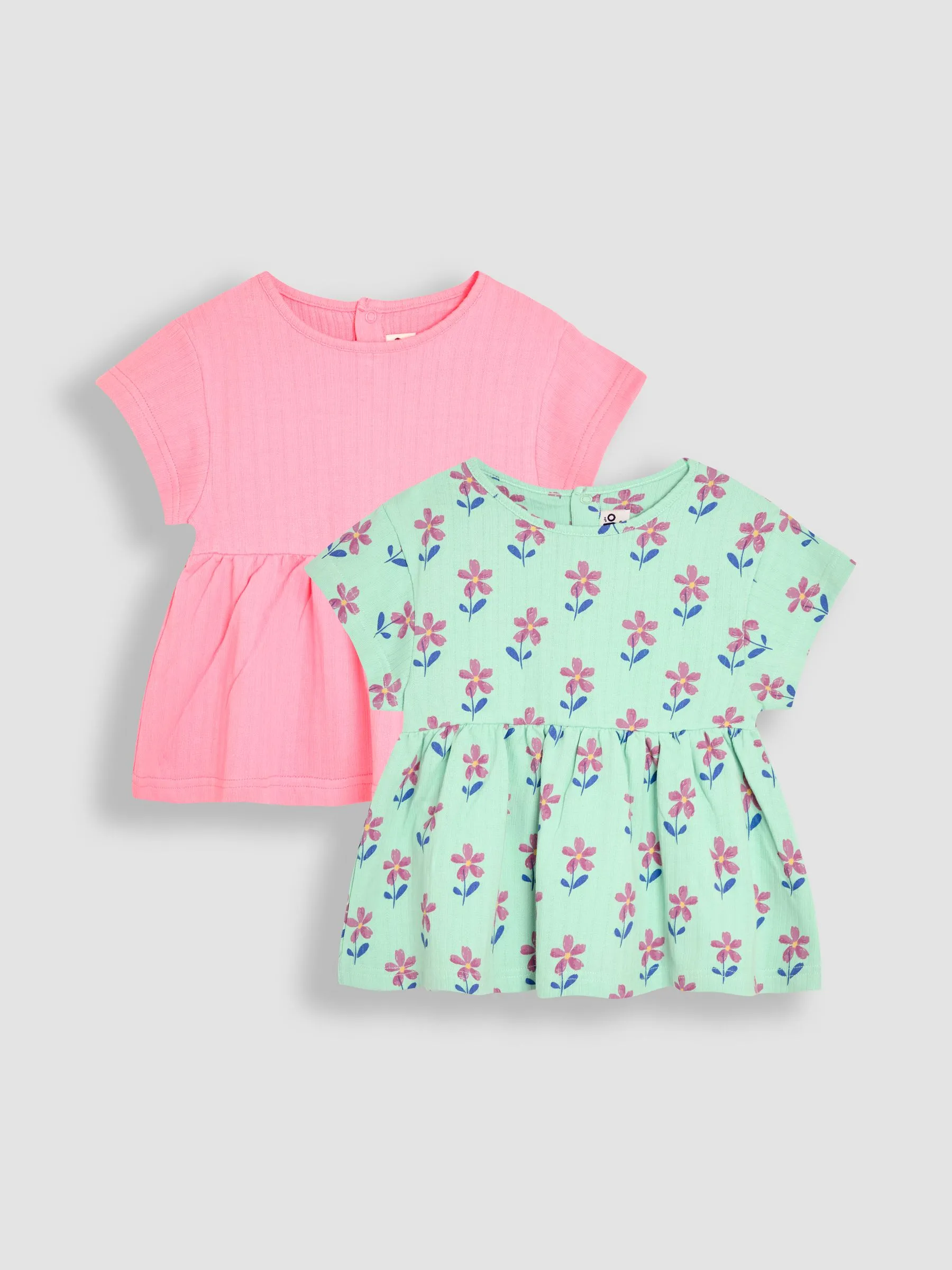 • Green Floral Print 2-Pack Drop Shoulder T-Shirts