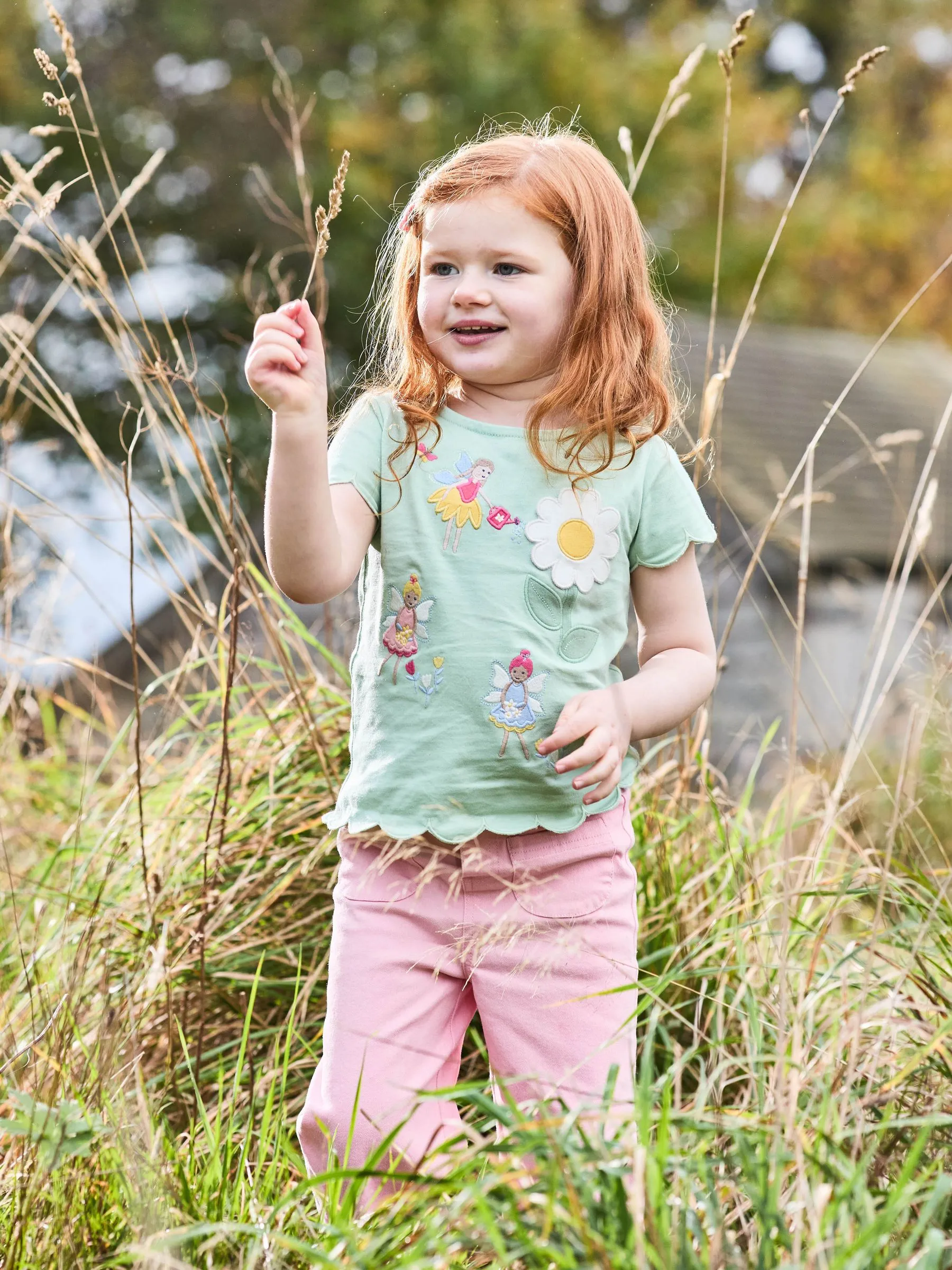 • Green Fairy & Daisy Scallop Hem Appliqué Pocket T-Shirt