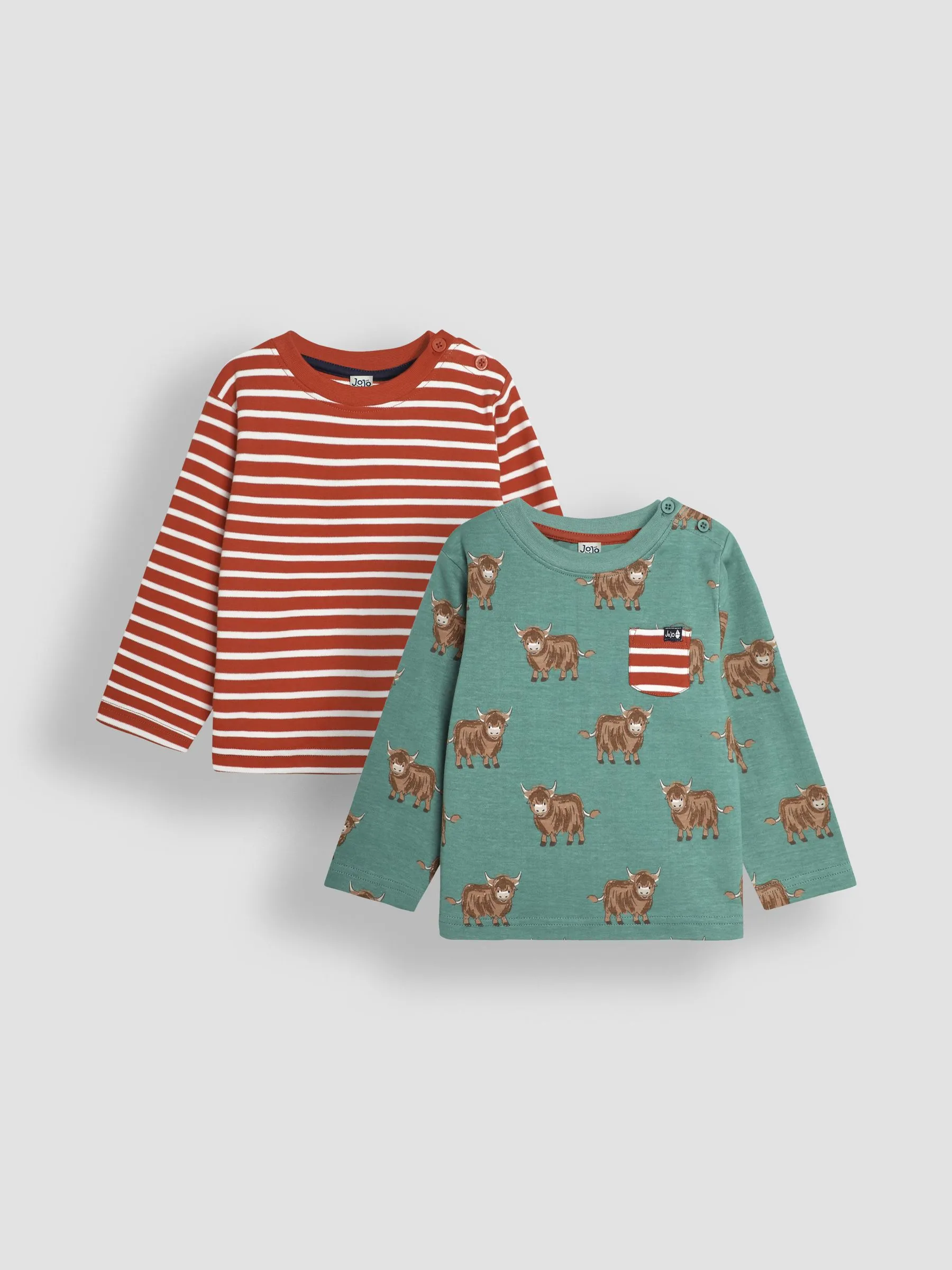 • Green Highland Cow Print & Stripe Long Sleeve 2-Pack Tops
