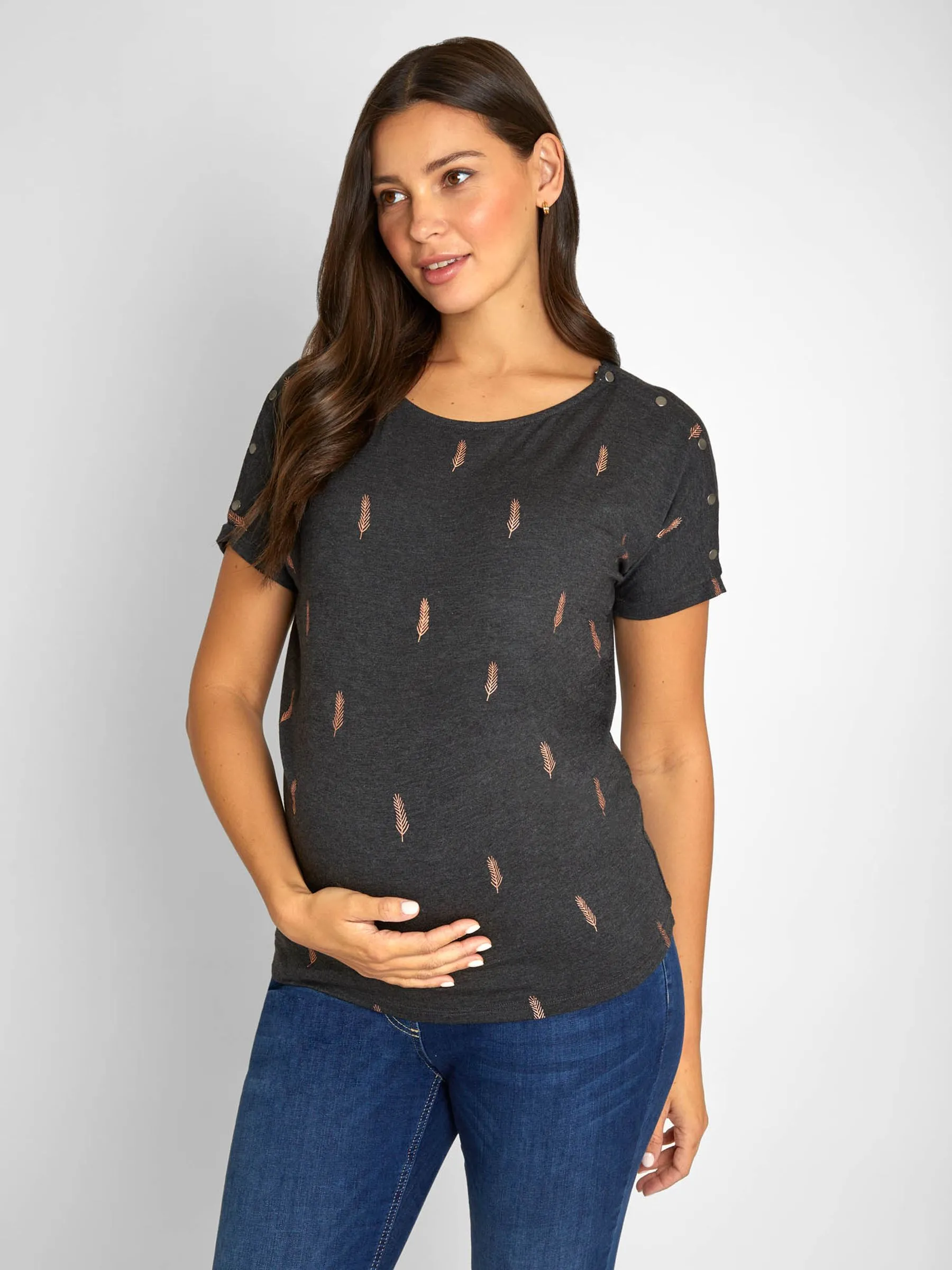 Marl Grey Foil Print Maternity & Nursing Top