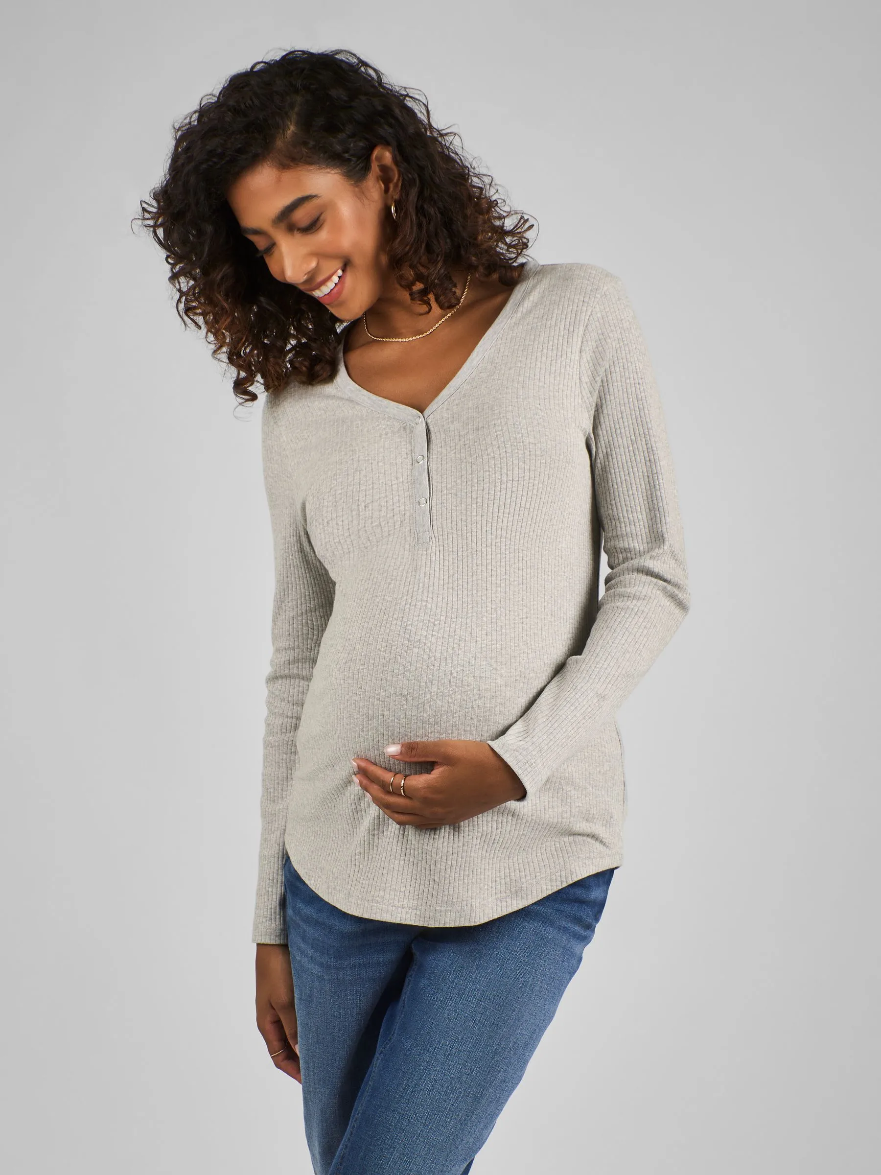 • Marl Grey Popper Front Jersey Maternity Top