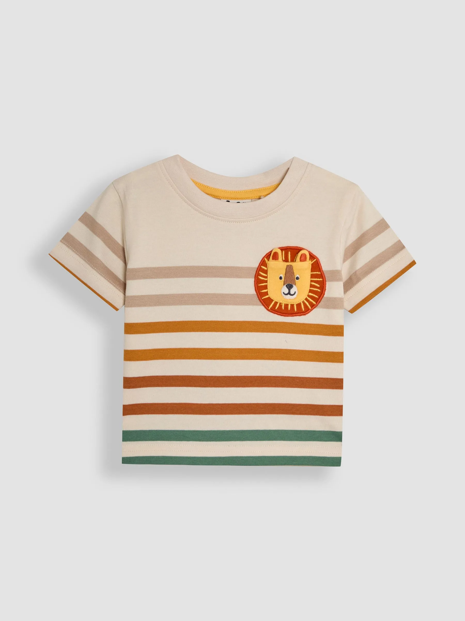 • Natural Lion Appliqué Pocket 100% Cotton T-Shirt