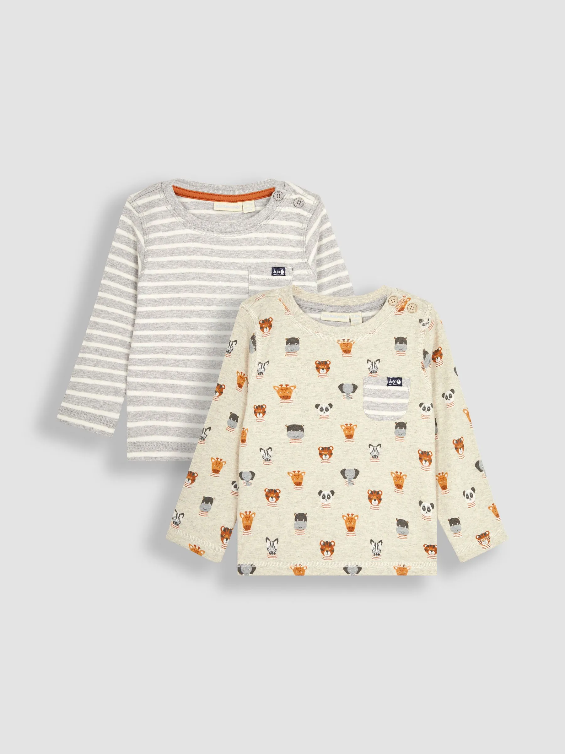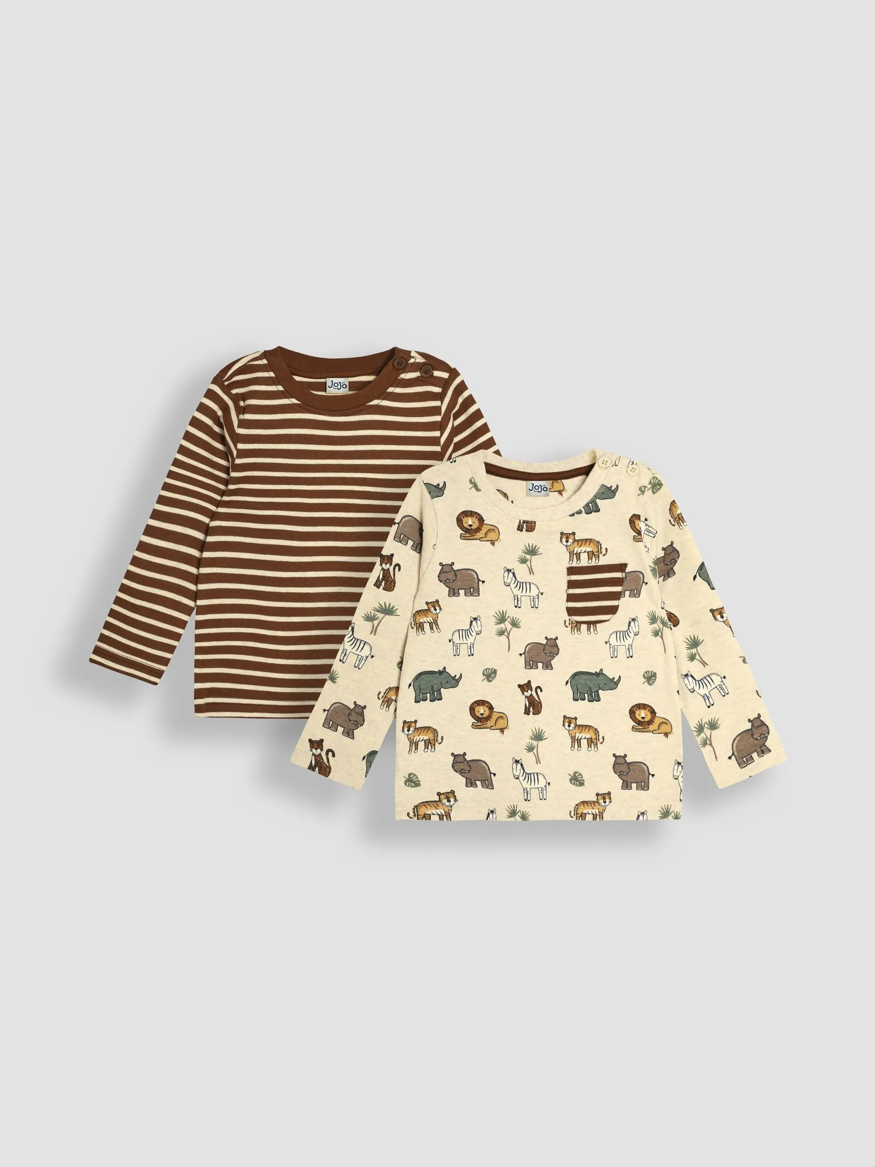 • Natural Safari Animals Print & Stripe Long Sleeve 2-Pack Tops