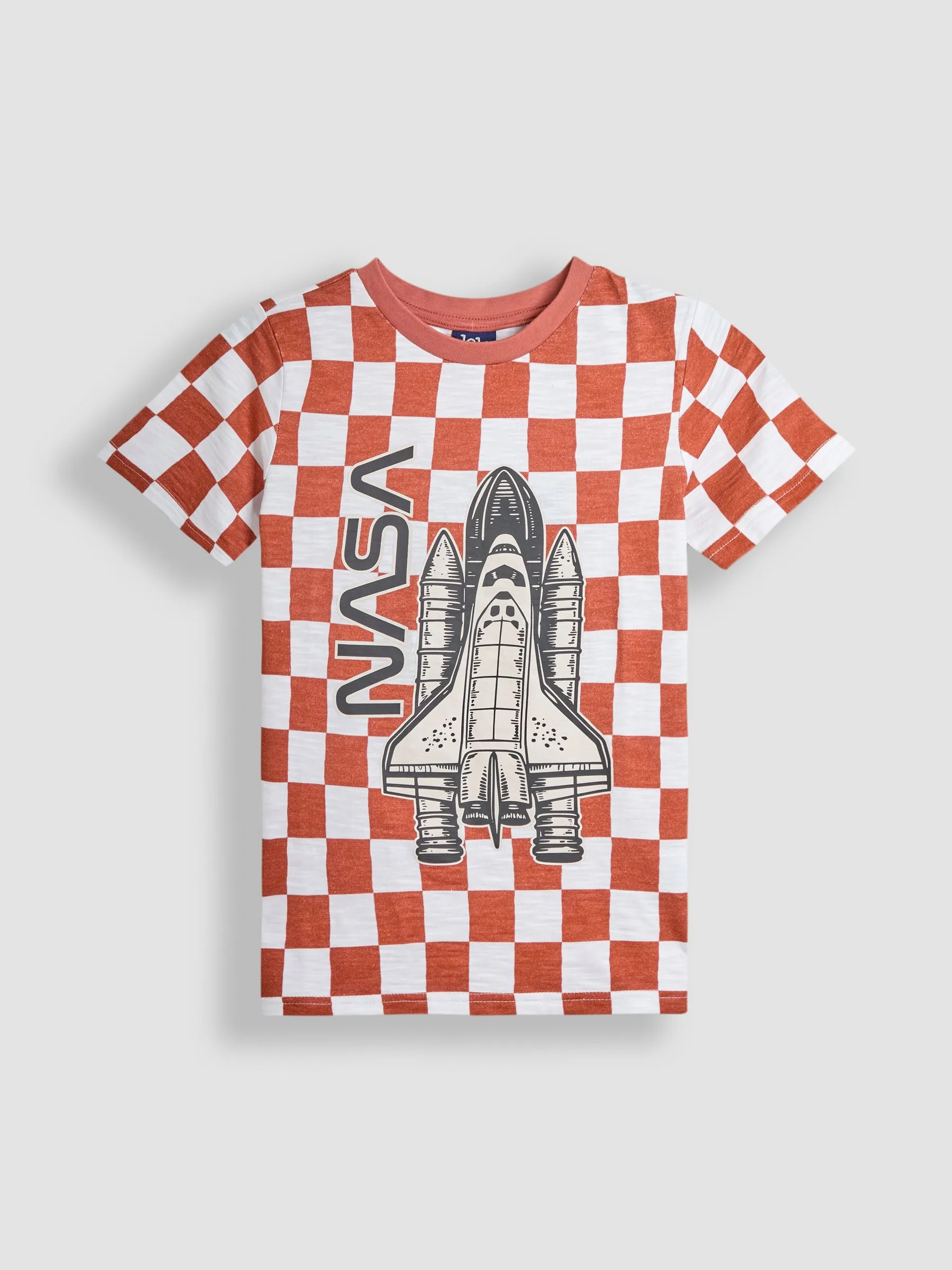 Sale!Rust Nasa Graphic Print Checkerboard T-Shirt