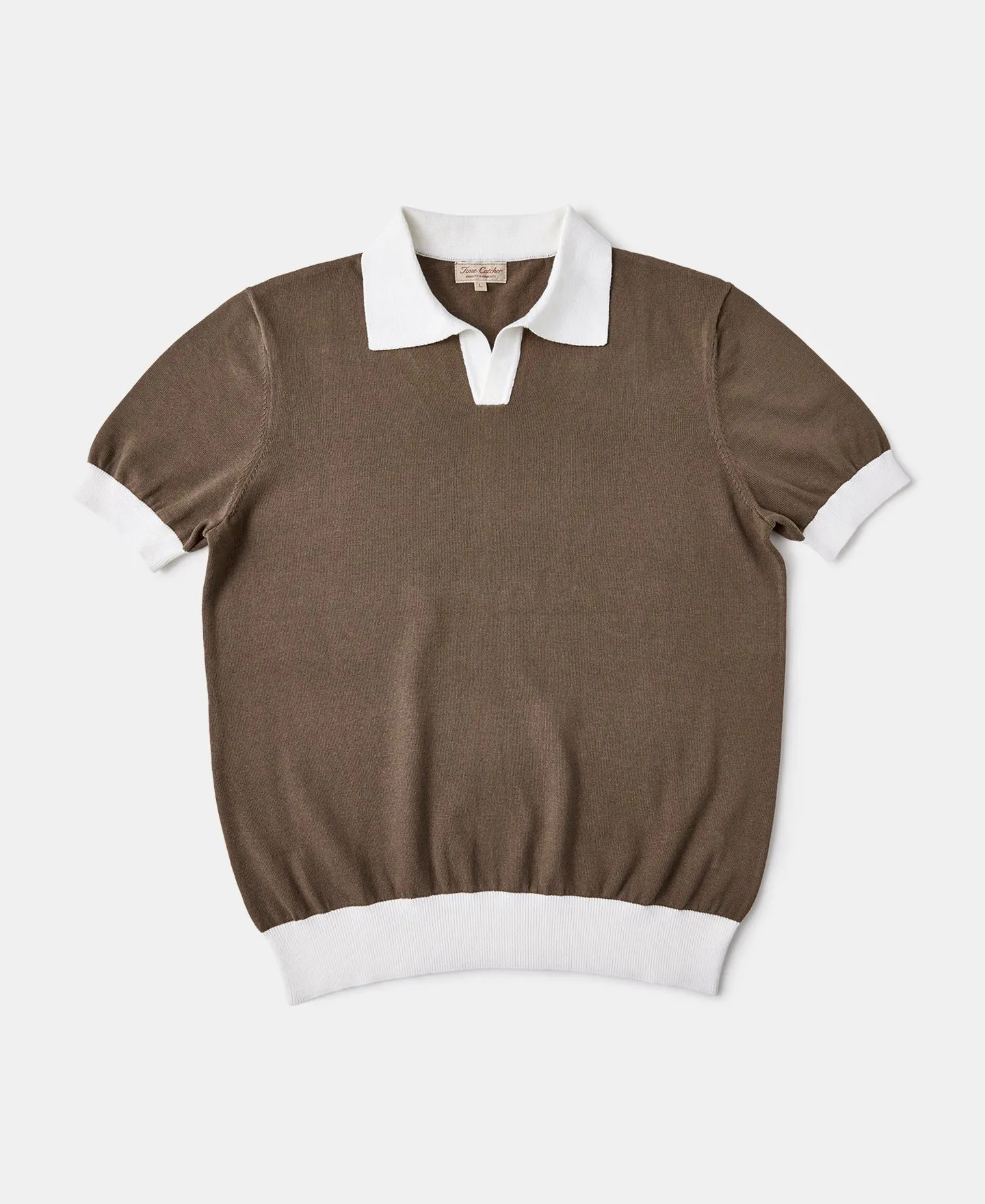 Sale!Two-Tone Johnny Collar Cotton Polo Shirt – White/Brown