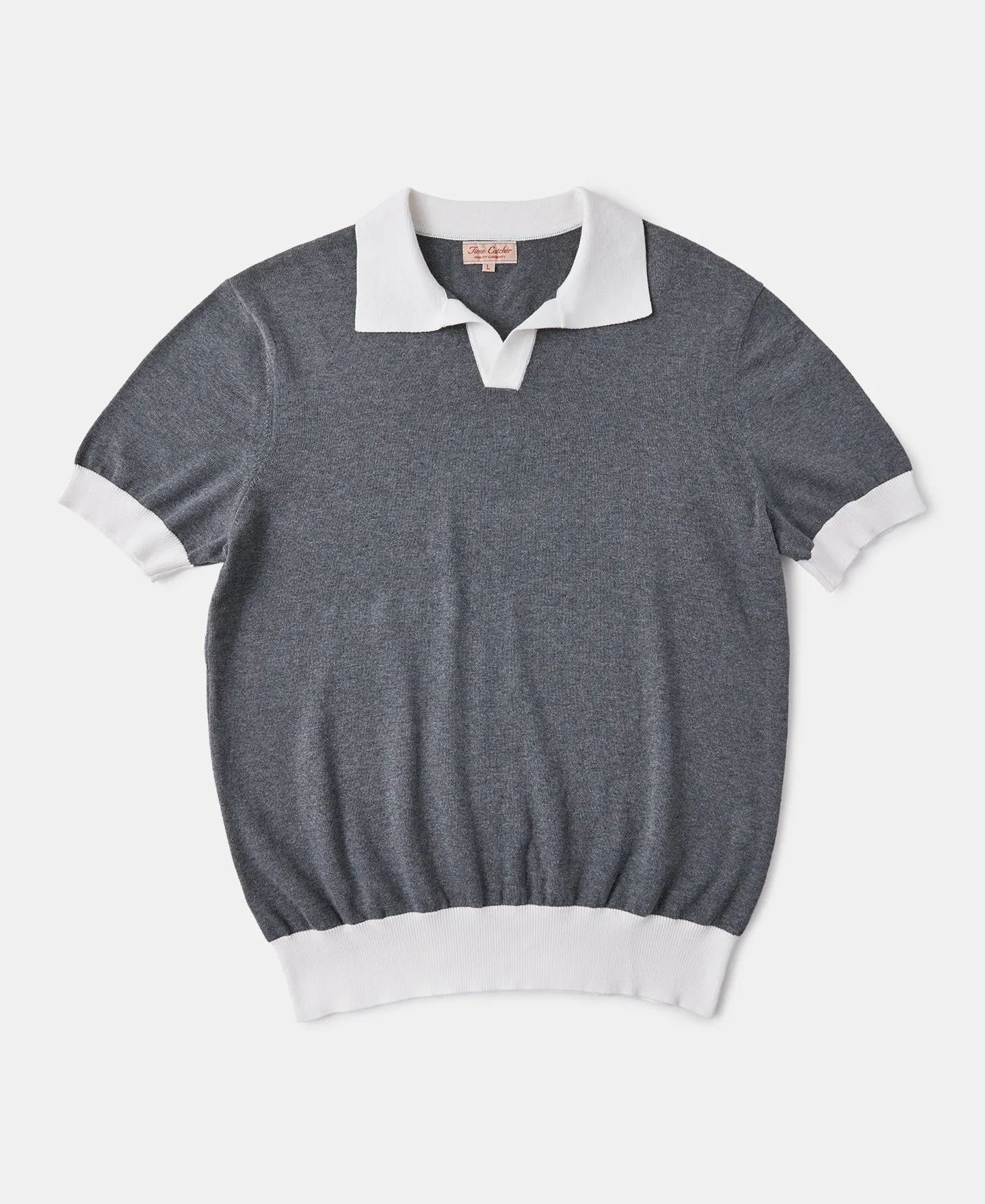 Sale!Two-Tone Johnny Collar Cotton Polo Shirt – White/Gray