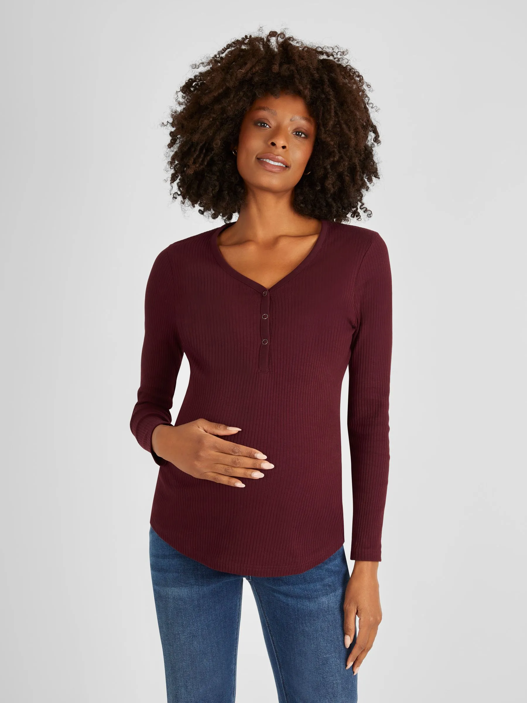 Sale!Wine and Navy 2-Pack Ribbed Maternity & Nursing Top