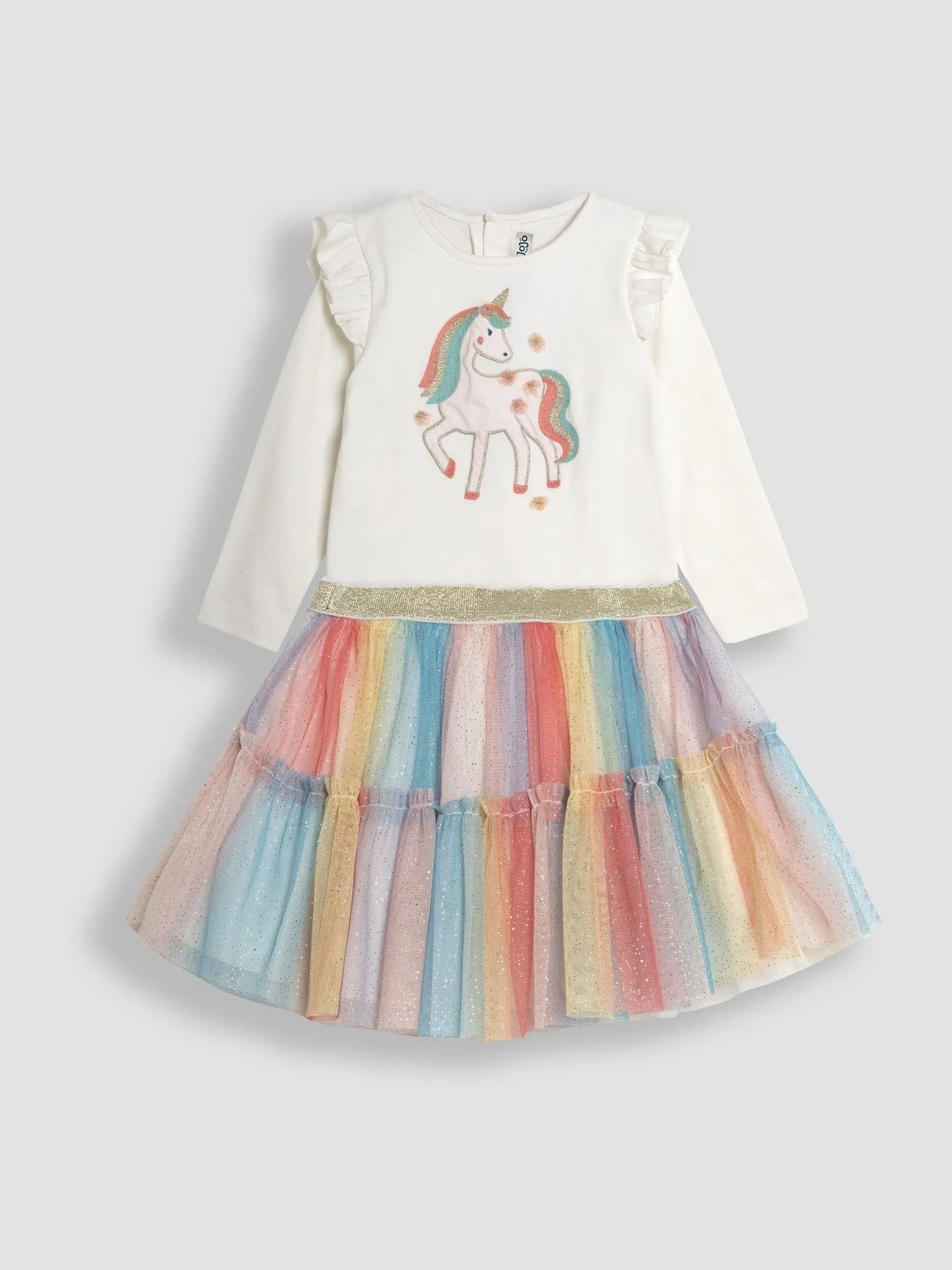 Sale!Cream Unicorn Frill Sleeve Top & Tulle Skirt Set