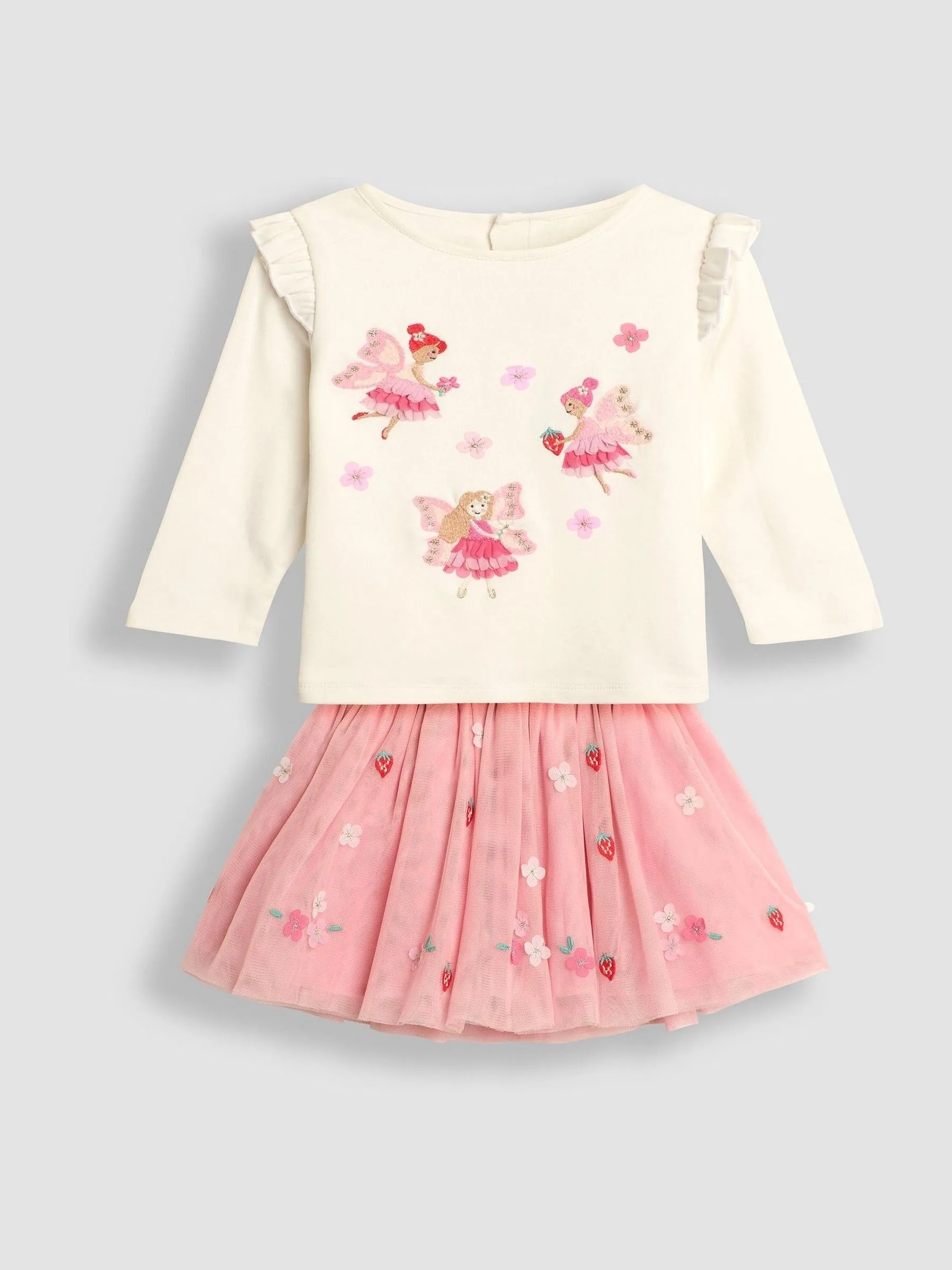 Sale!Pink Fairy Appliqué Top And Tulle Skirt Set