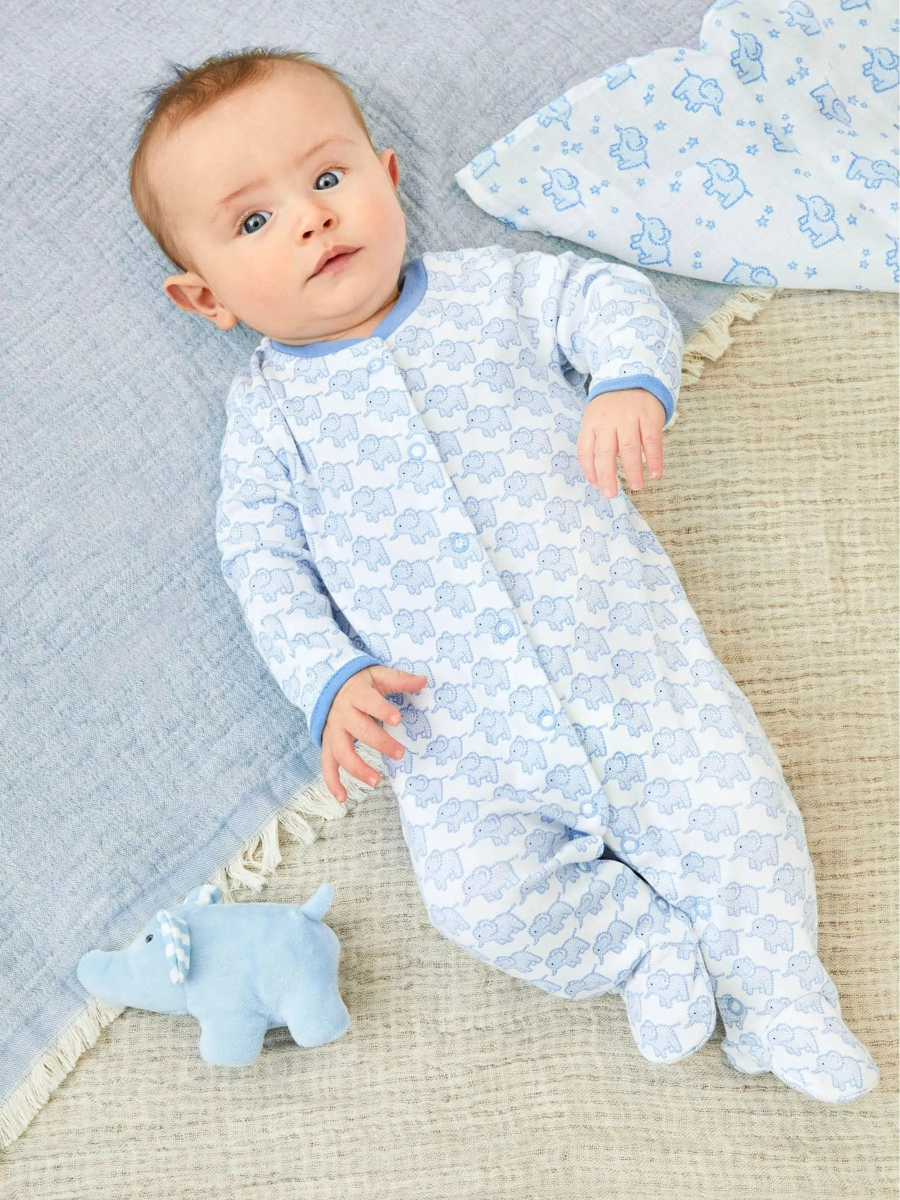 • Baby Blue Little Elephant Cotton Baby Sleepsuit