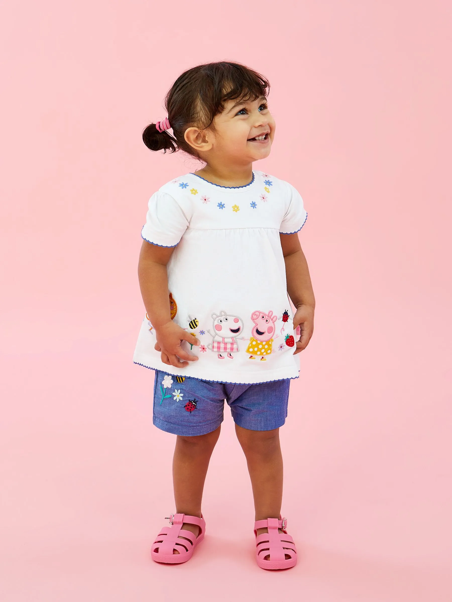 Sale!2-Piece Peppa Pig Embroidered Top & Shorts Set in White