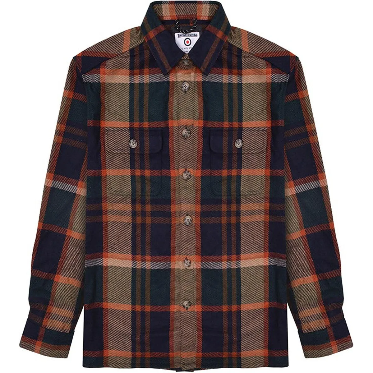 Sale!Lambretta Mens Wool Long Sleeve Checked Over Shirt – Brown/Orange