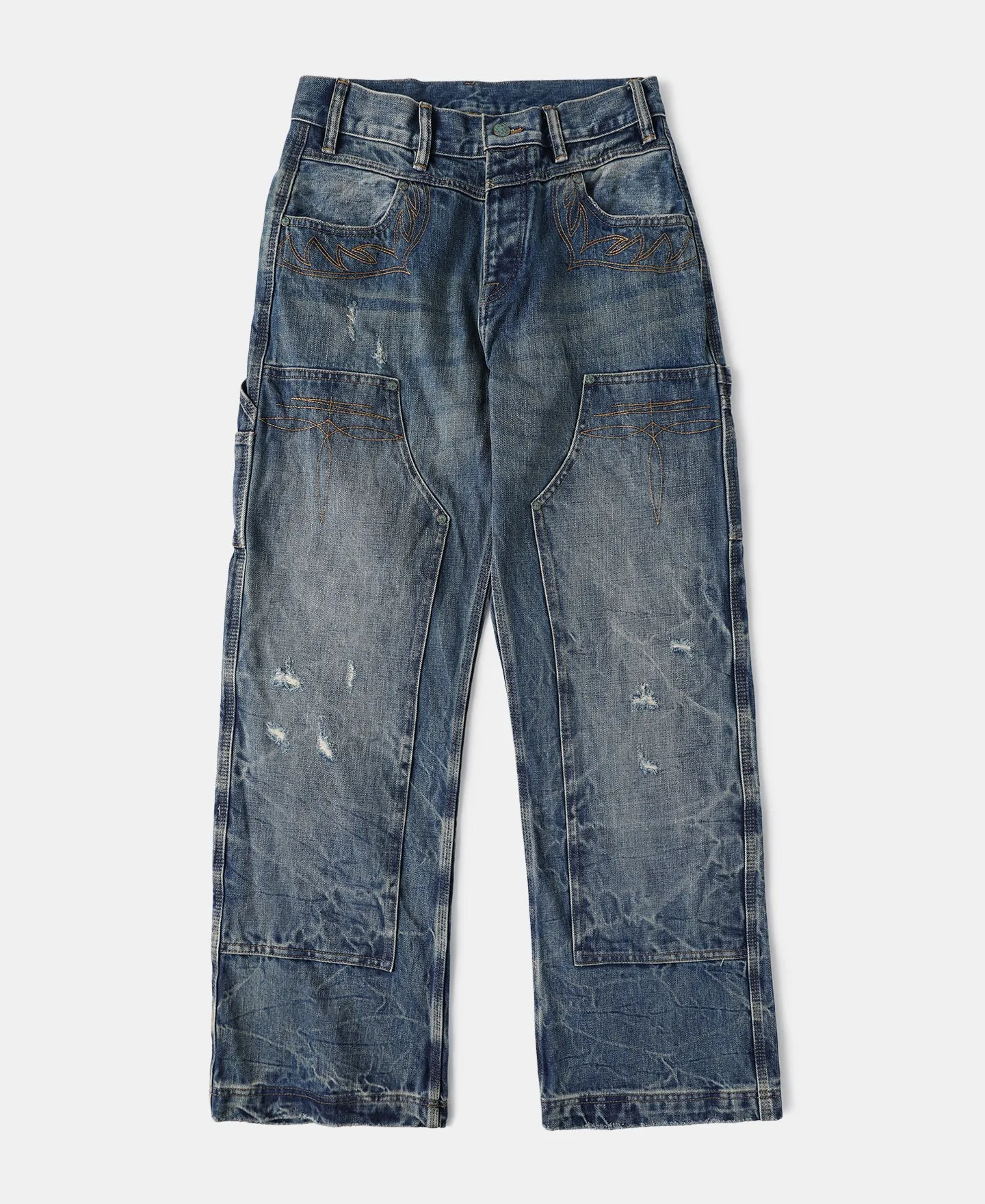 Repaired Embroidered Double Knee Carpenter Jeans
