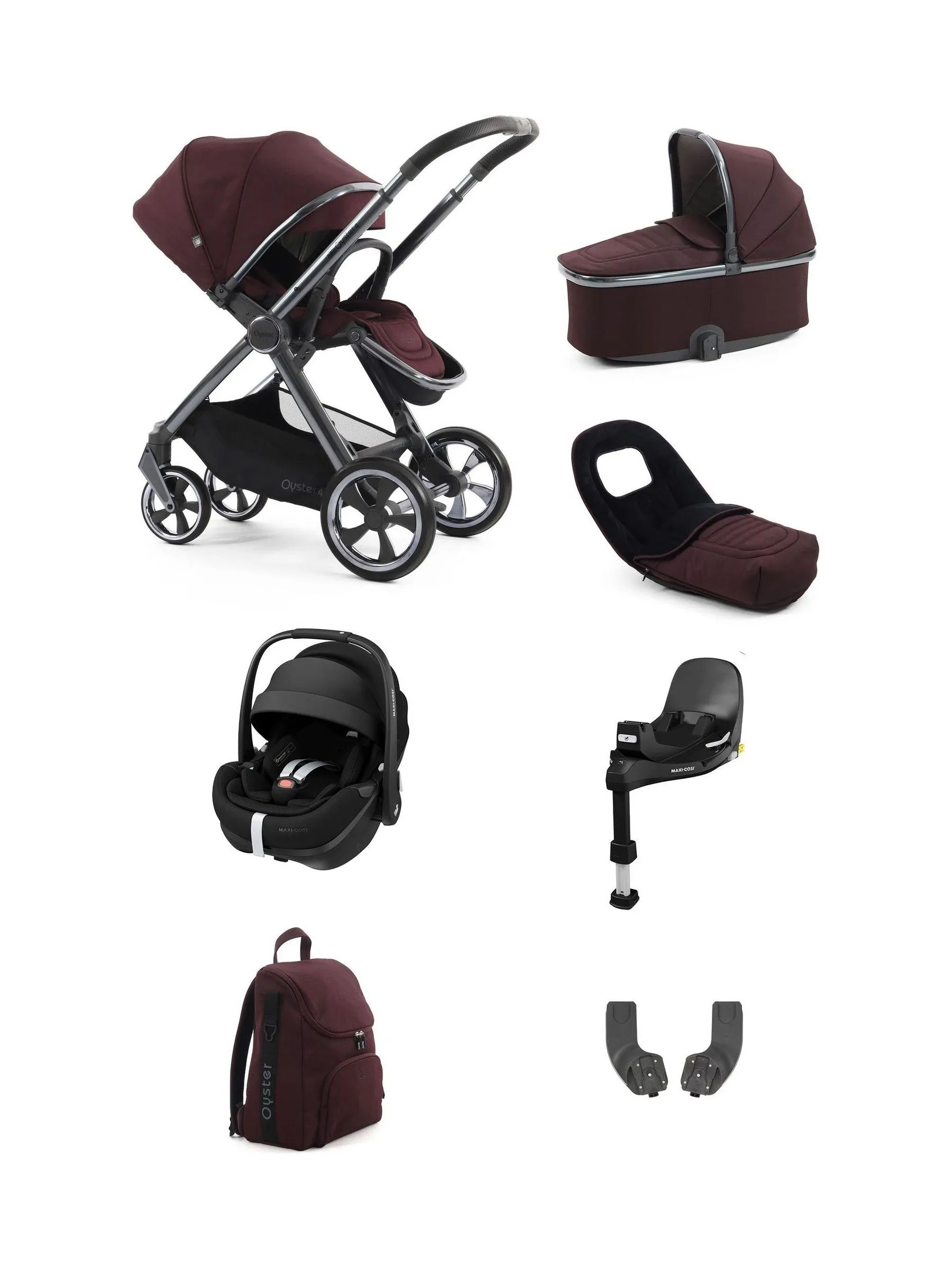 Sale!Oyster4 Chocolate Luxury 7 Piece Nursery Travel Bundle with Maxi Cosi 360 Pro 2 Car Seat & Base