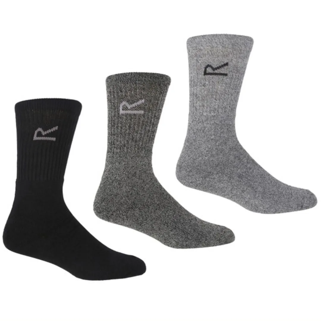 Regatta 3 Pack Walking Crew Length Socks – Grey/Black 6-11 UK