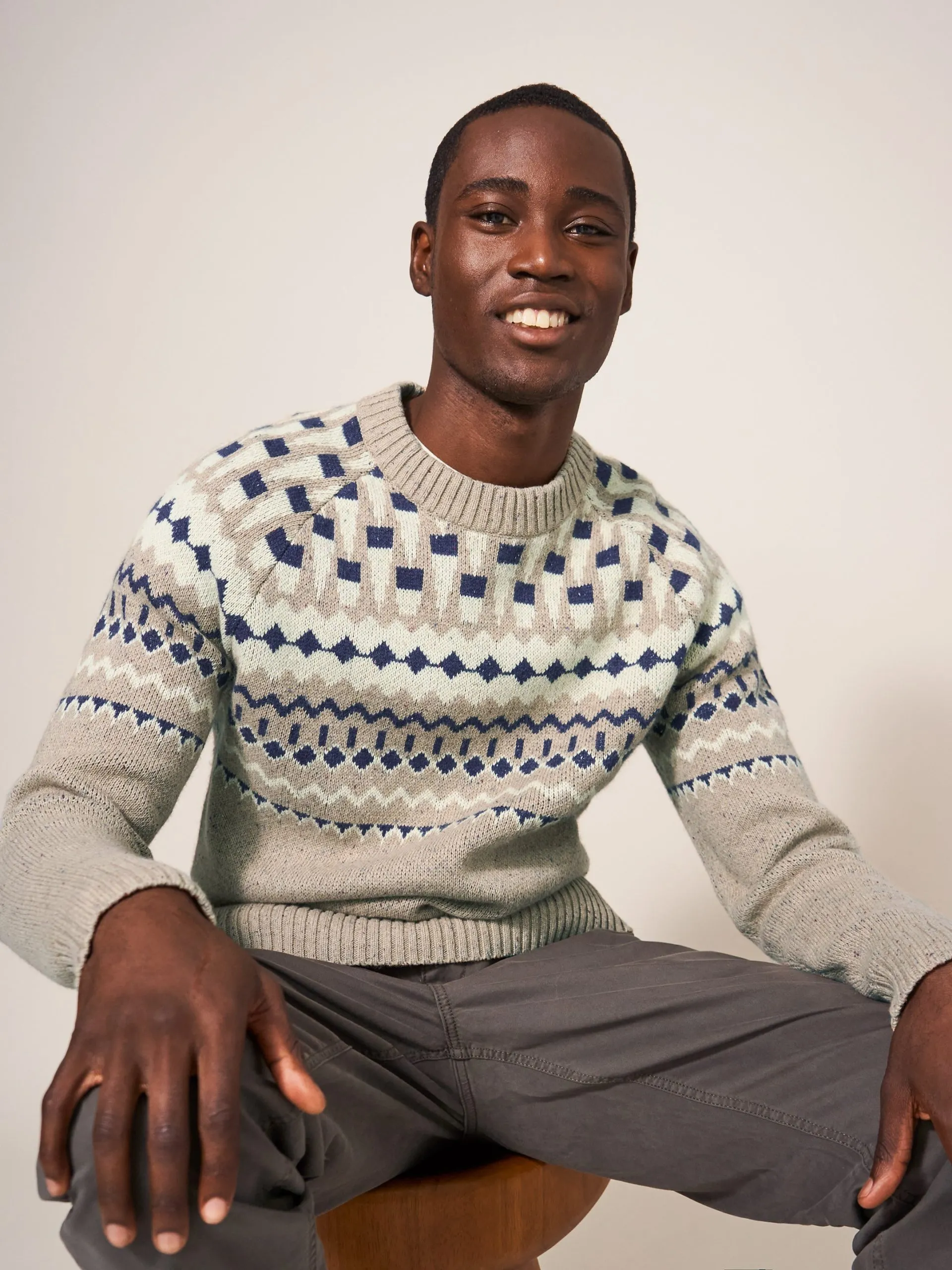 White Stuff Nordic Yoke Fairisle Crew in Dark Natural