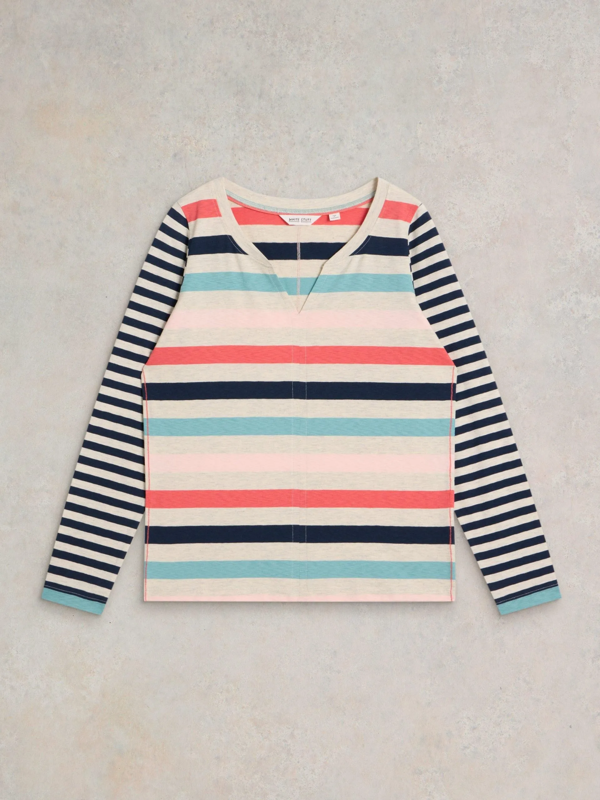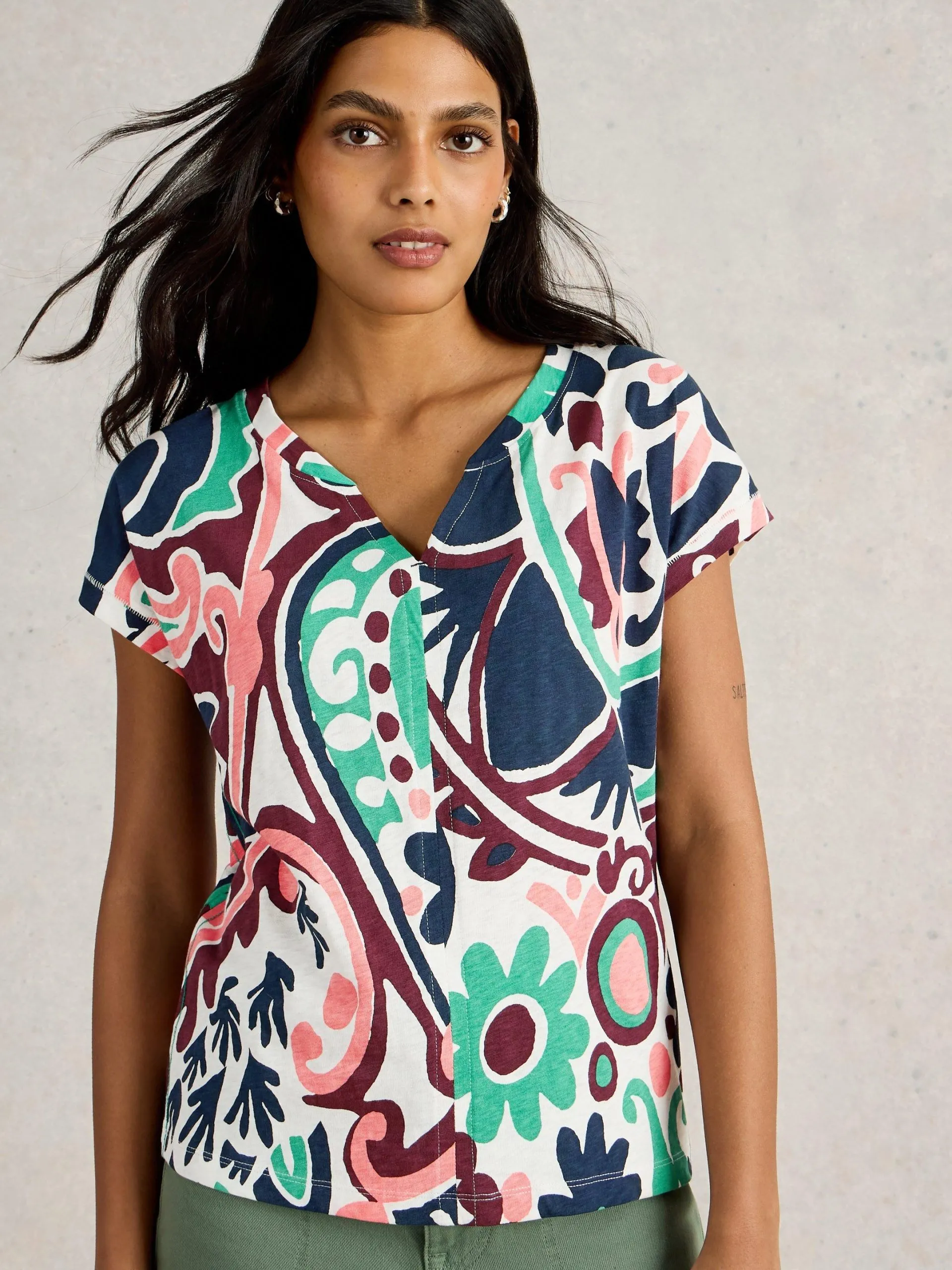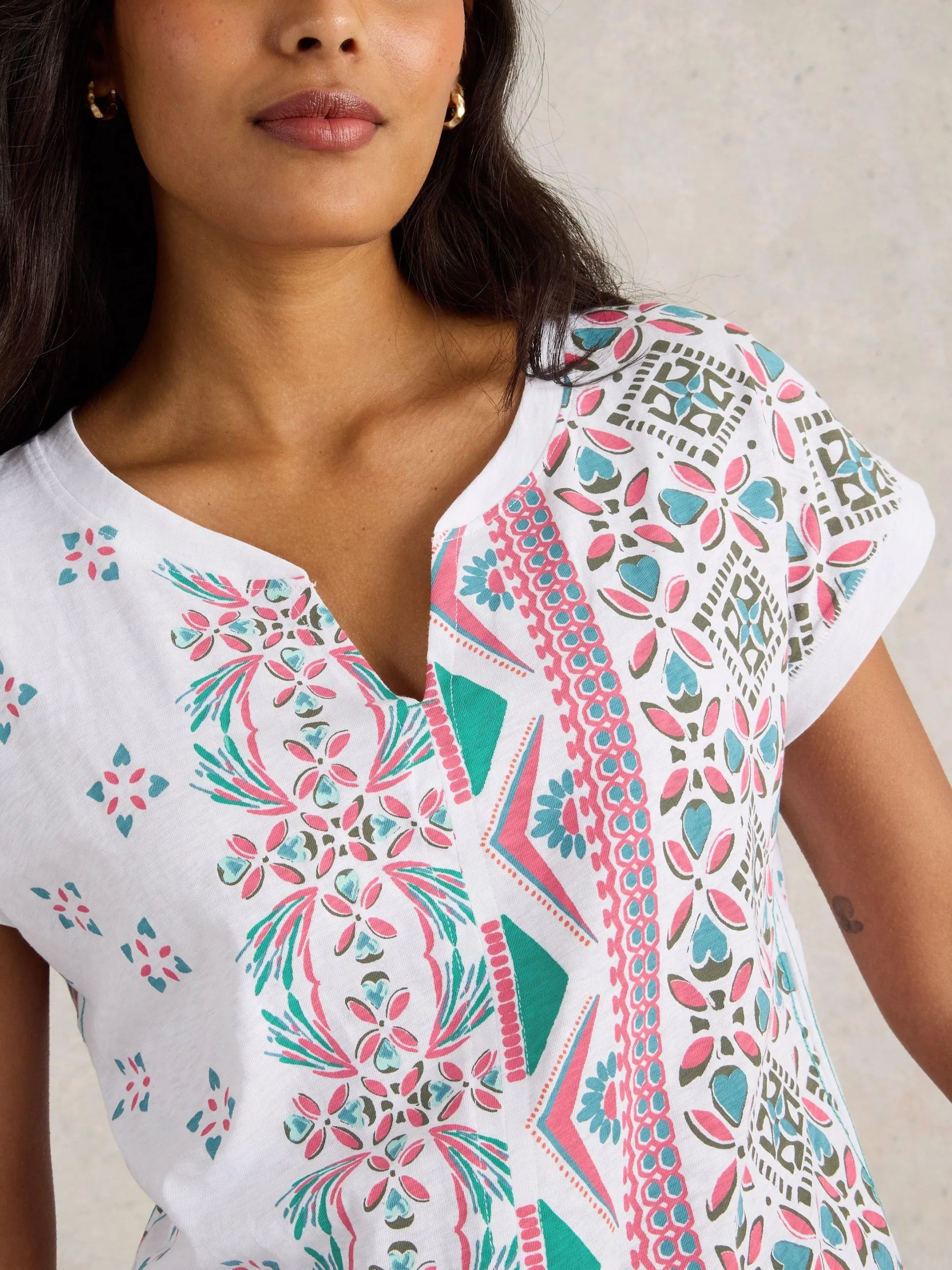 • White Stuff Nelly Notch T-Shirt in Natural Multi