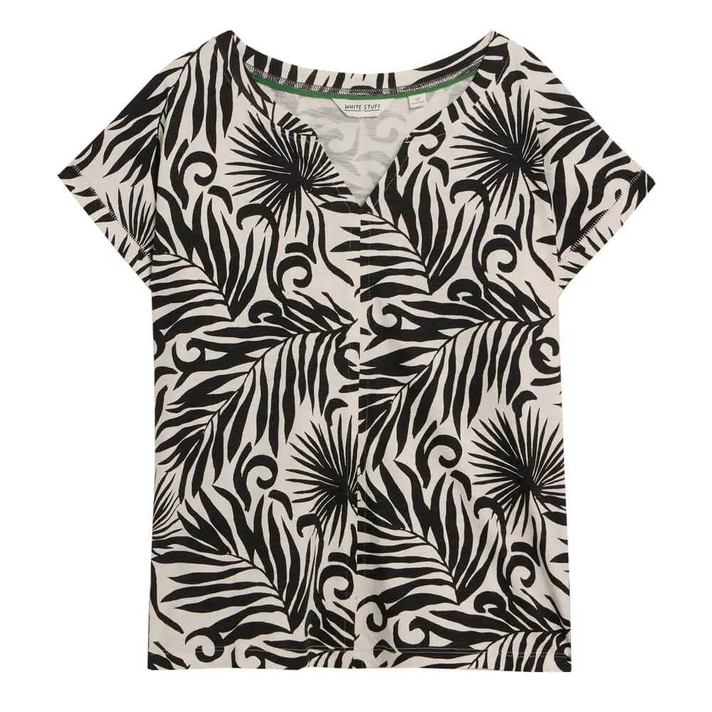 • White Stuff Nelly Notch T-Shirt in Black Print