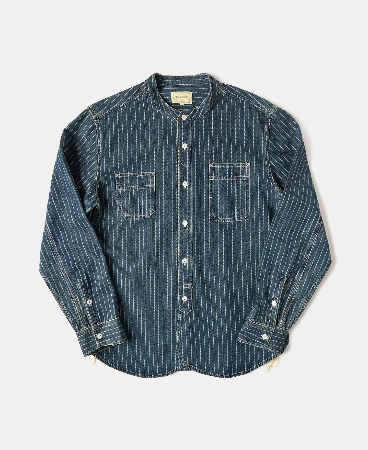 This short-sleeve shirt is crafted from 100% cotton seersucker, featuring alternating sets of deep and light yarn-dyed stripes and a puckered texture unique to the fabric. The uneven surface promotes airflow and reduces direct contact with the skin, making it ideal for summer wear. The chest pocket is carefully aligned with the body stripes for a clean, consistent look. Cut in a relaxed fit, it features a 1940s-style open collar and a simple straight hem. The placket is finished with refined imported natural shell buttons.