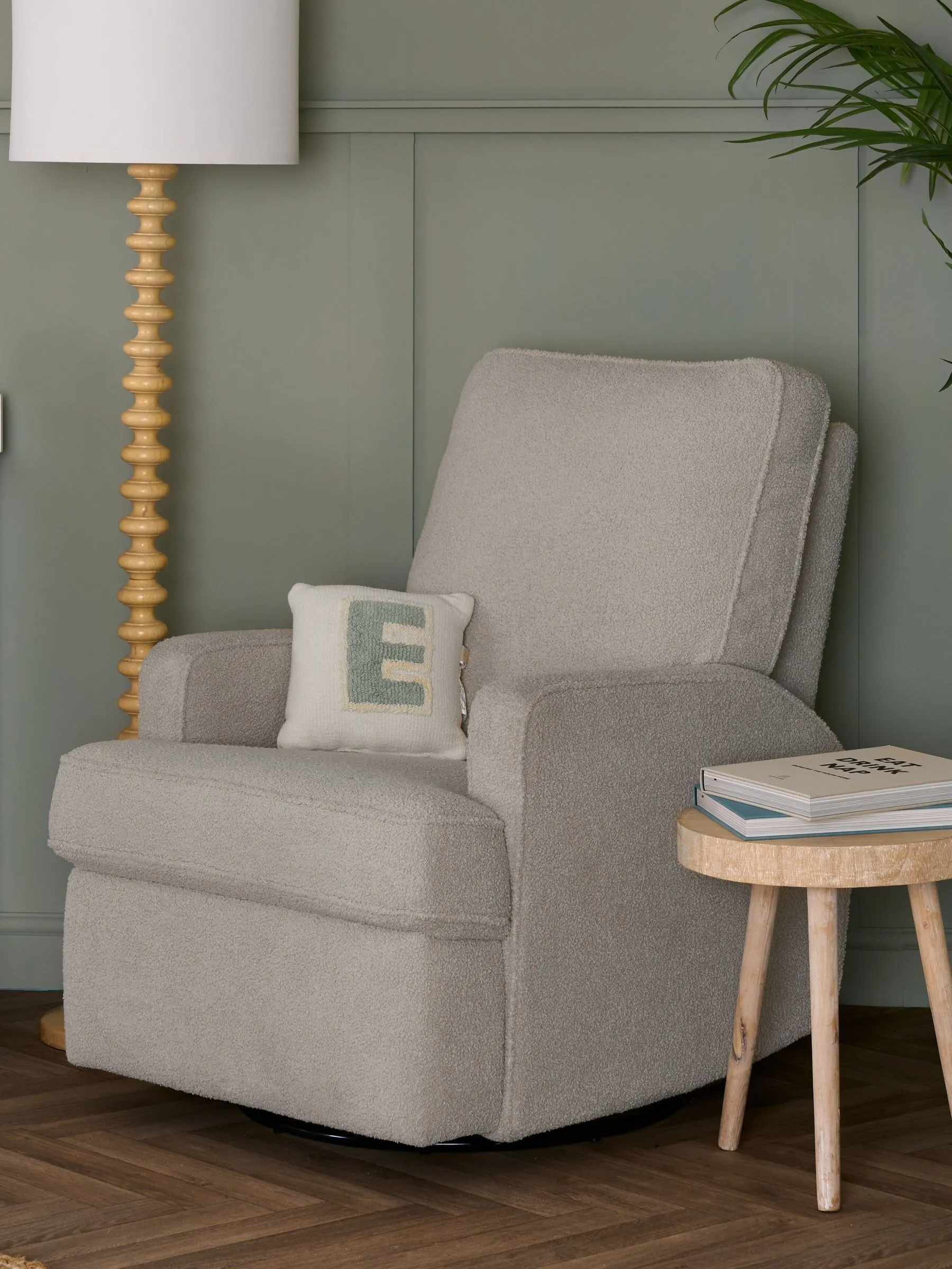 Beautifully contoured with classic styling, the Gaia Baby rocking/feeding chair will add a contemporary feel to any nursery or living space. Ergonomically designed to provide optimum comfort as a nursing/ feeding chair with an extra lumbar cushion and padded armrests. The softly contoured solid wood legs allow for a soothing rocking motion, whilst the generously sized seat easily accommodates a parent and child creating a cosy nook for bedtime stories. Finely upholstered with removable/ washable armrests in durable woven polyester. Beautiful styling combines with ultimate comfort. Featuring solid birch contoured legs for a smooth rocking motion. Ergonomic arm height and extra lumbar support offer extra comfort at feeding time. Extra-wide seat leaves plenty of space for your toddler to cosy up for bedtime stories. Finely upholstered in durable woven polyester. The protective armrest can be removed and machine washed.